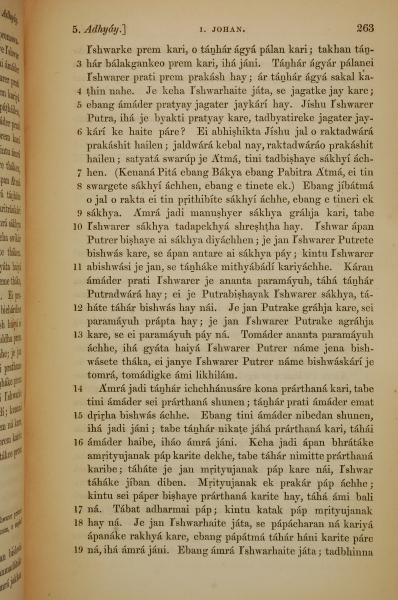 1839年孟加拉语新约全书 约翰一书 5 章 3 节到 5 章 19 节