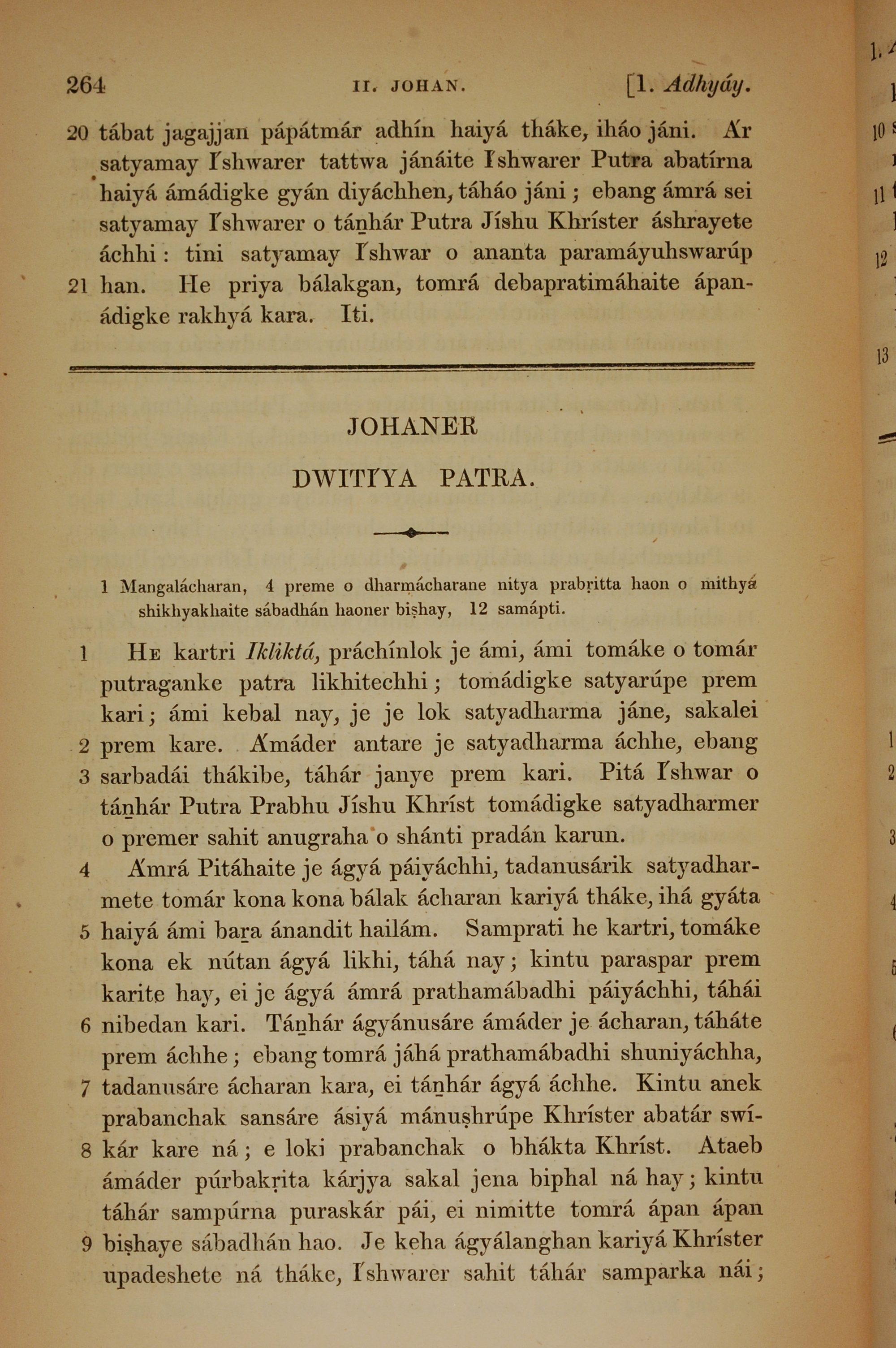 1839年孟加拉语新约全书 约翰二书 1 章 1 节到 1 章 9 节