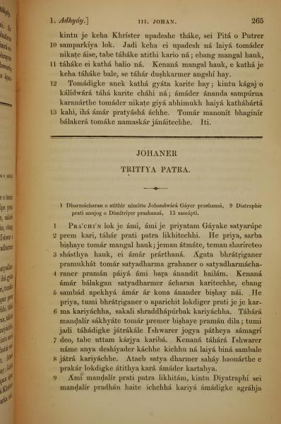 1839年孟加拉语新约全书 约翰三书 1 章 1 节到 1 章 9 节