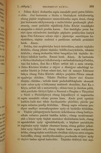 1839年孟加拉语新约全书 启示录 1 章 4 节到 1 章 17 节