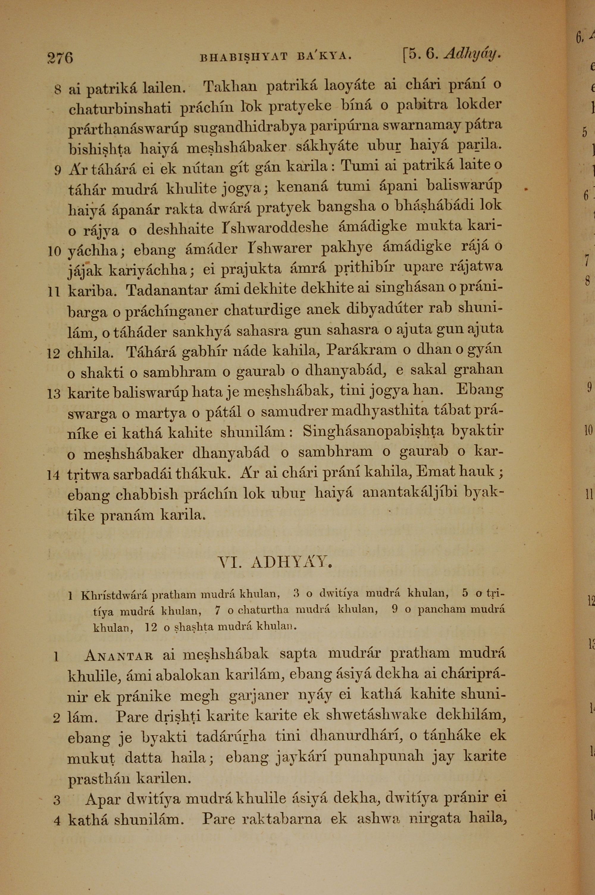 1839年孟加拉语新约全书 启示录 5 章 8 节到 6 章 4 节