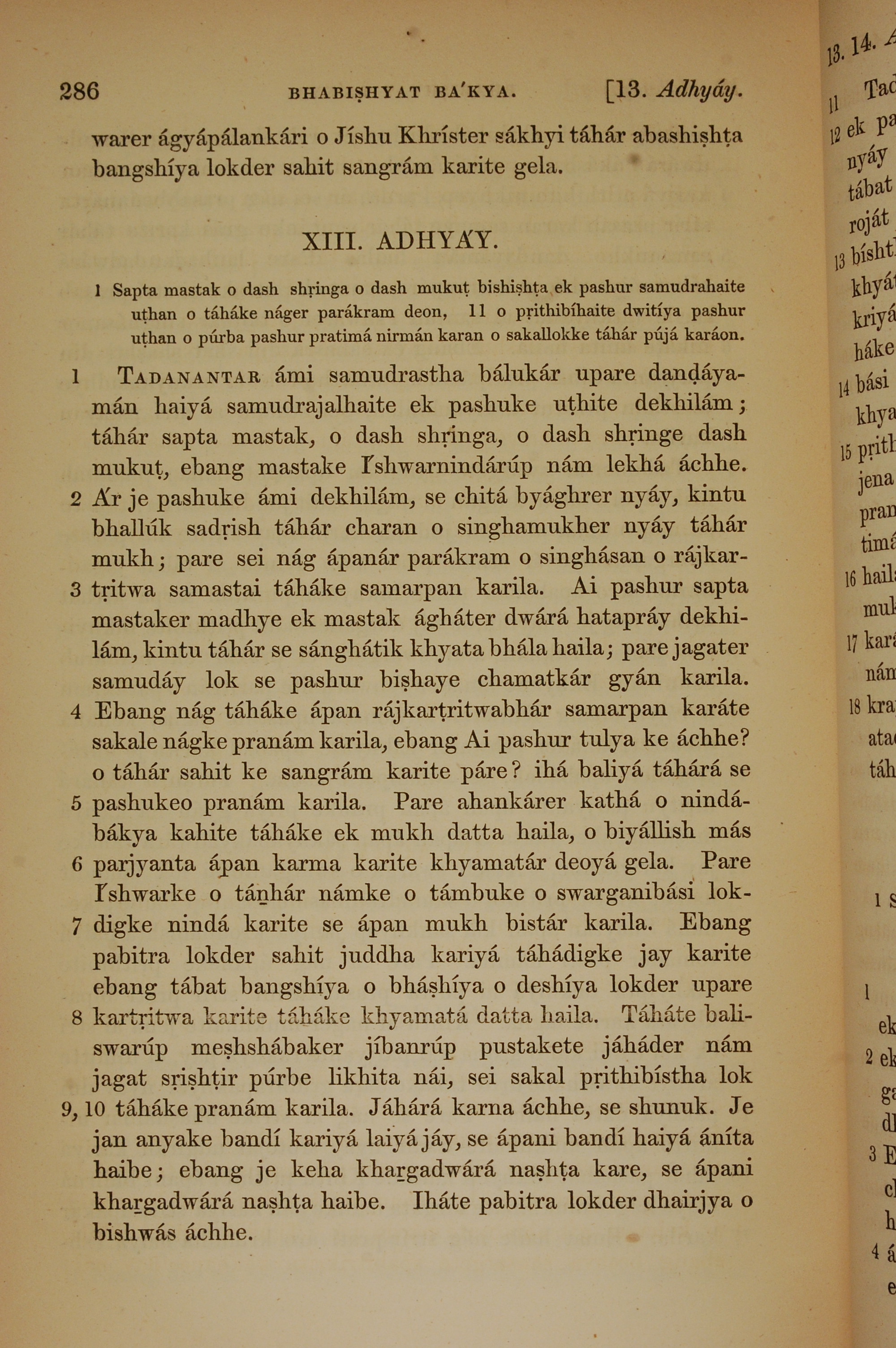 1839年孟加拉语新约全书 启示录 13 章 1 节到 13 章 10 节
