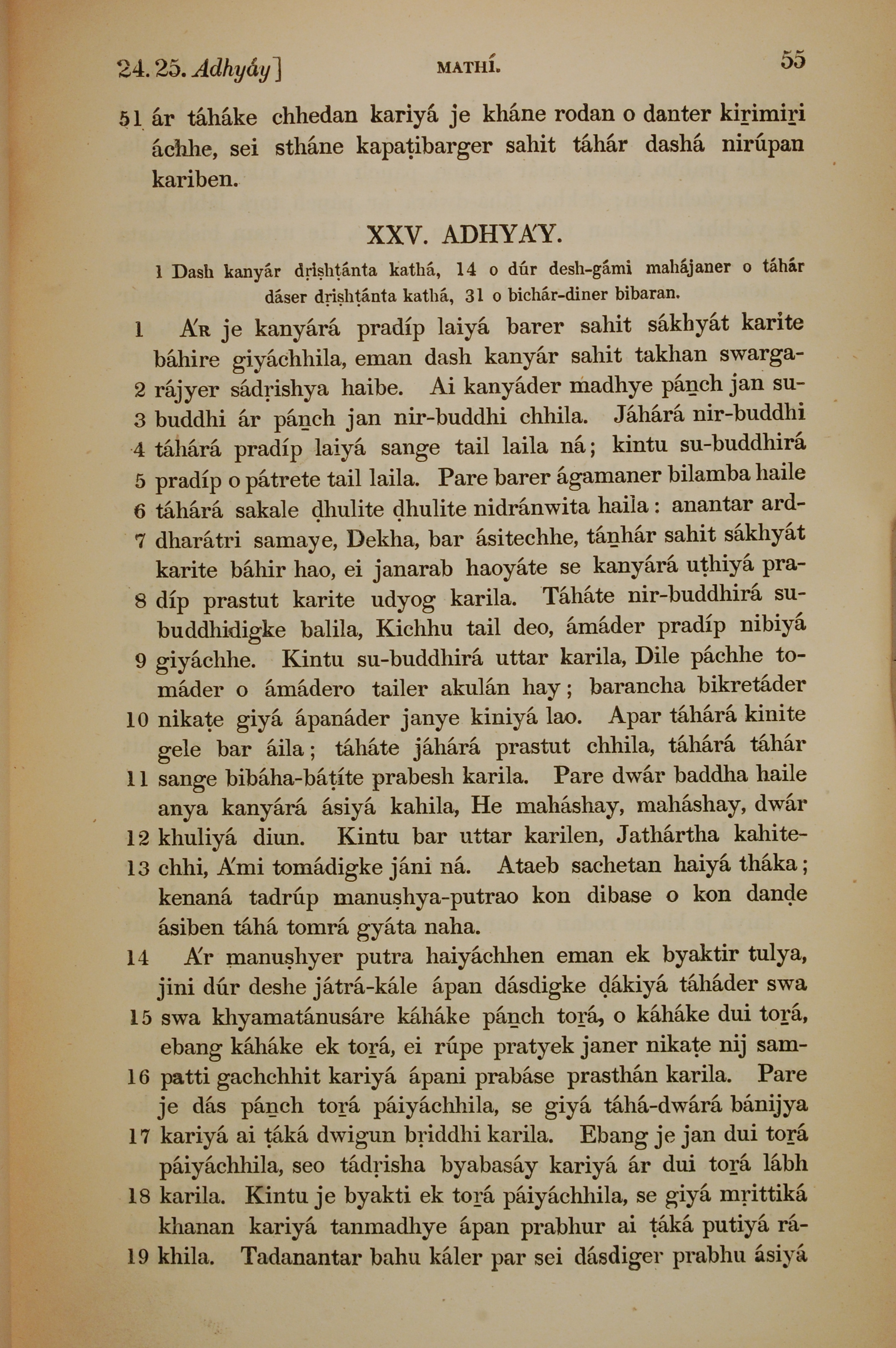 1839年孟加拉语新约全书 马太福音 24 章 51 节到 25 章 19 节