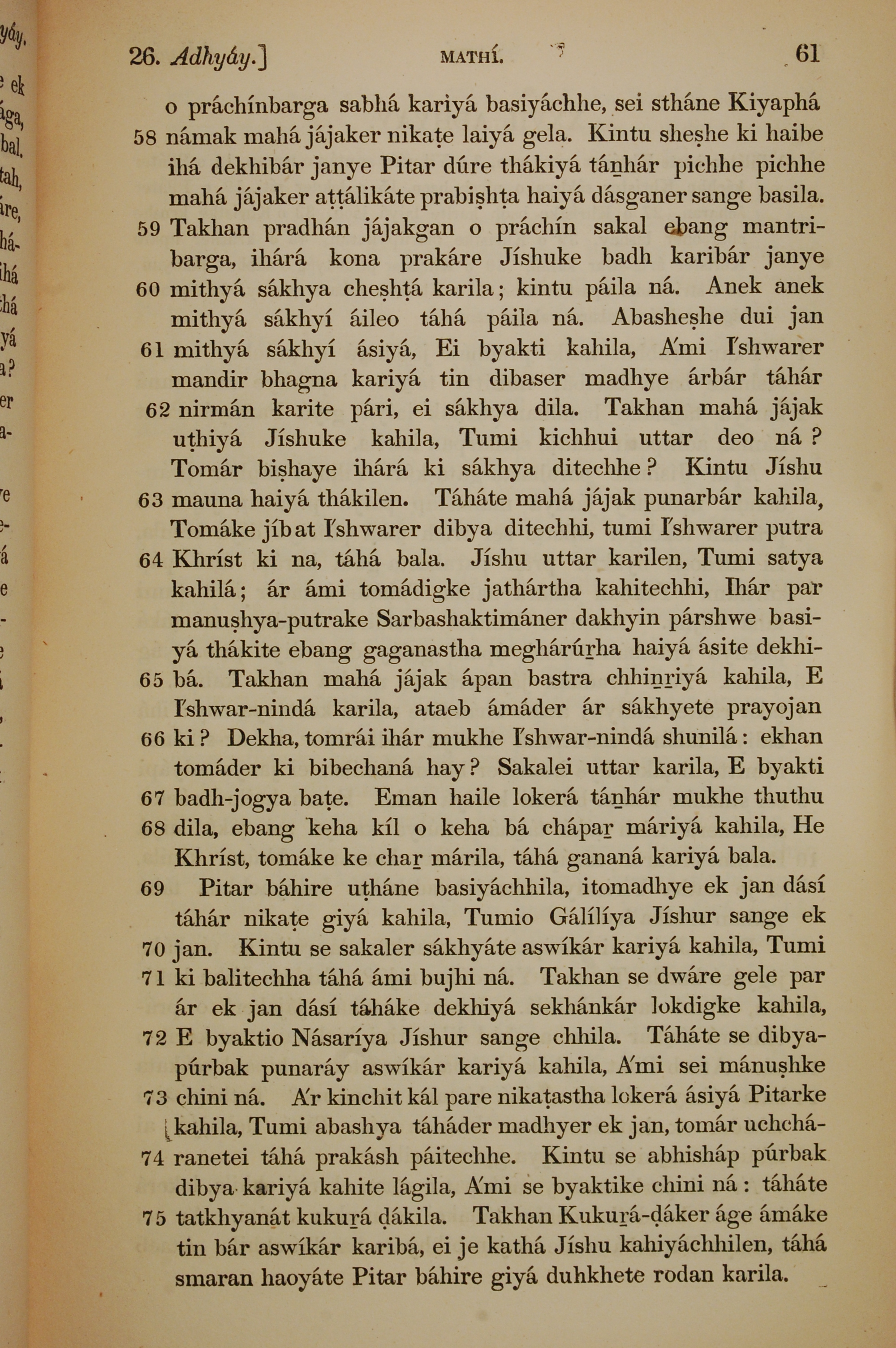 1839年孟加拉语新约全书 马太福音 26 章 58 节到 26 章 75 节