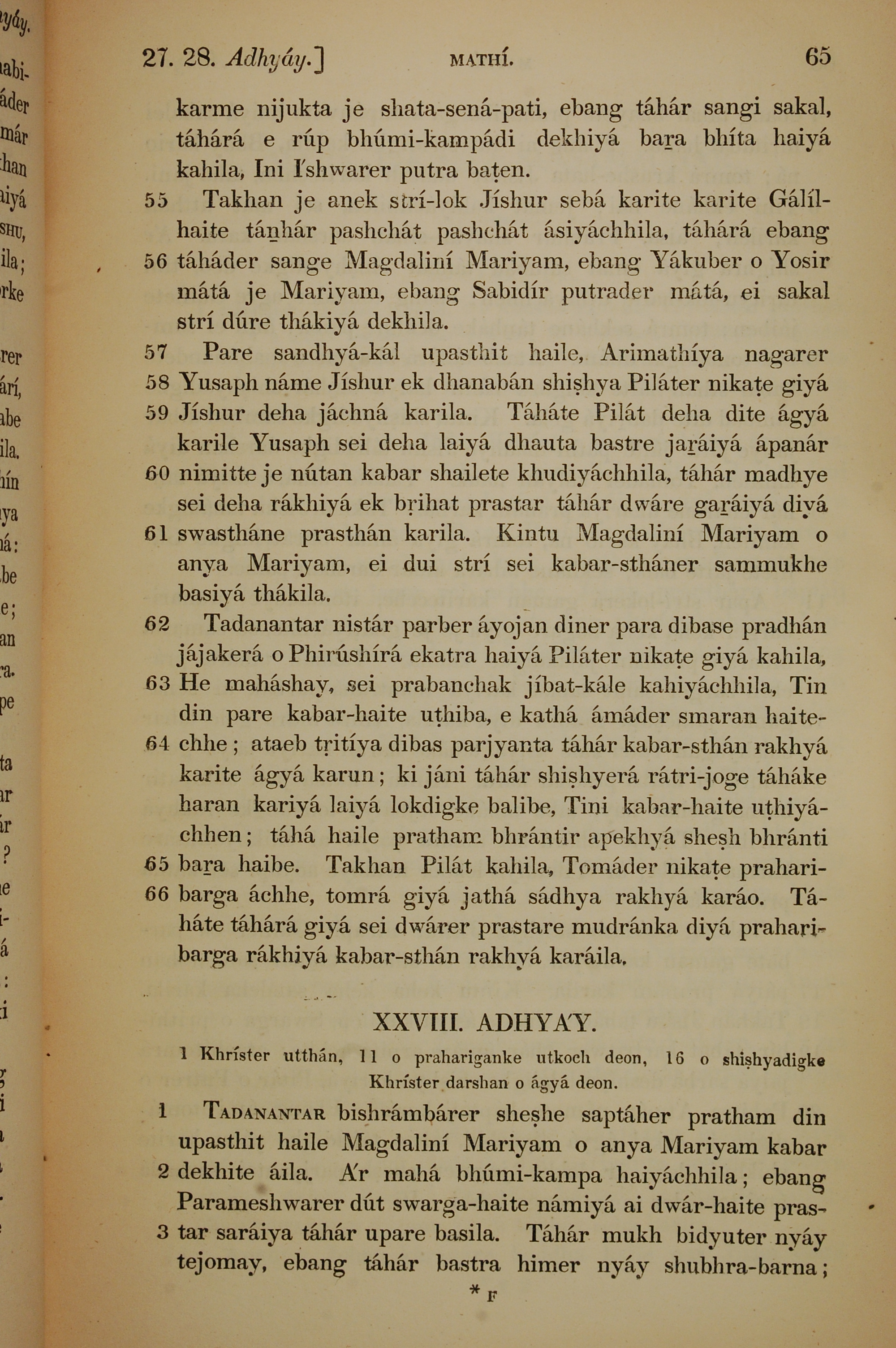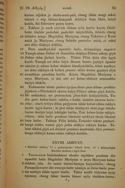 1839年孟加拉语新约全书 马太福音 27 章 55 节到 28 章 3 节