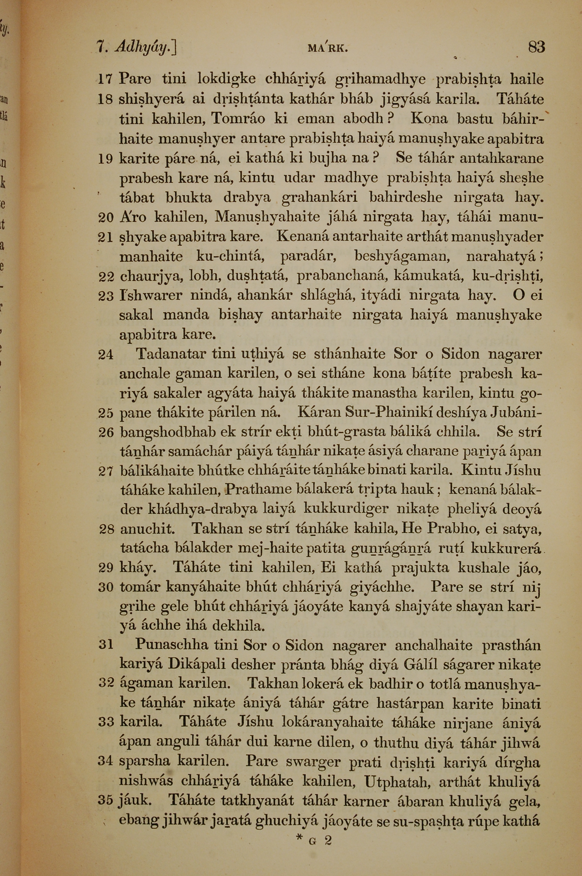 1839年孟加拉语新约全书 马可福音 7 章 17 节到 7 章 35 节