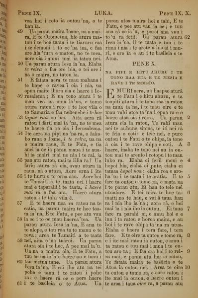 1853年塔希提语新约全书 路加福音 9 章 49 节到 10 章 10 节