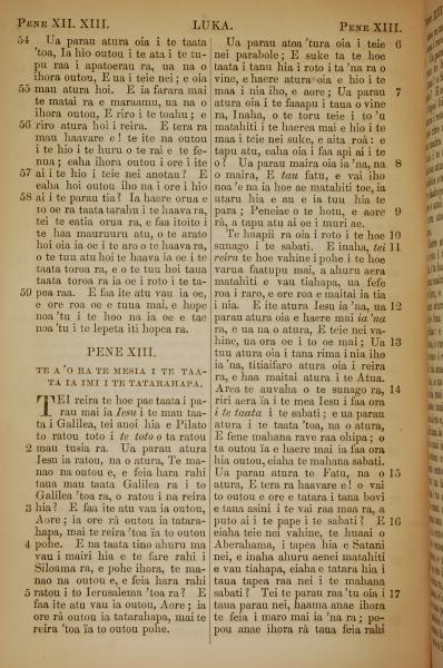 1853年塔希提语新约全书 路加福音 12 章 54 节到 13 章 17 节