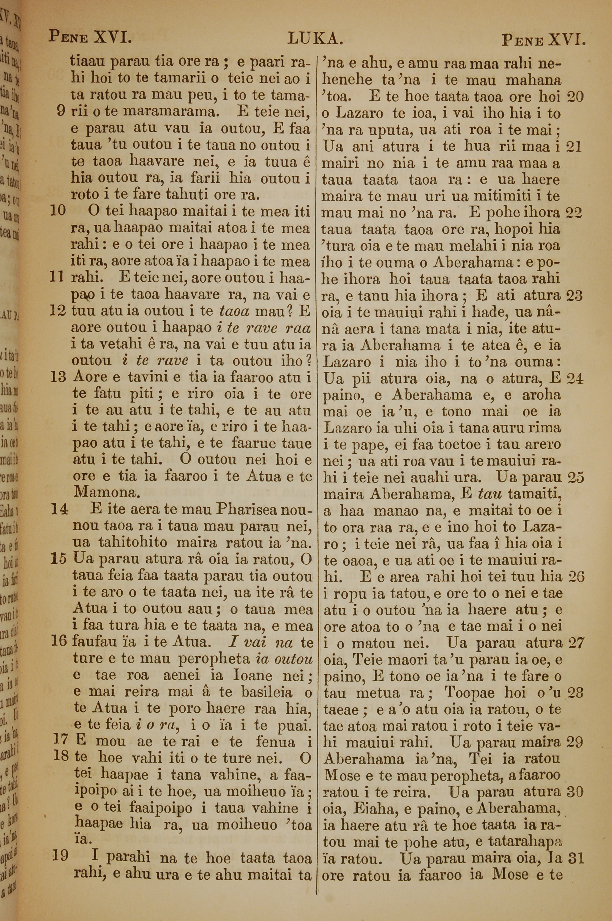 1853年塔希提语新约全书 路加福音 16 章 9 节到 16 章 31 节