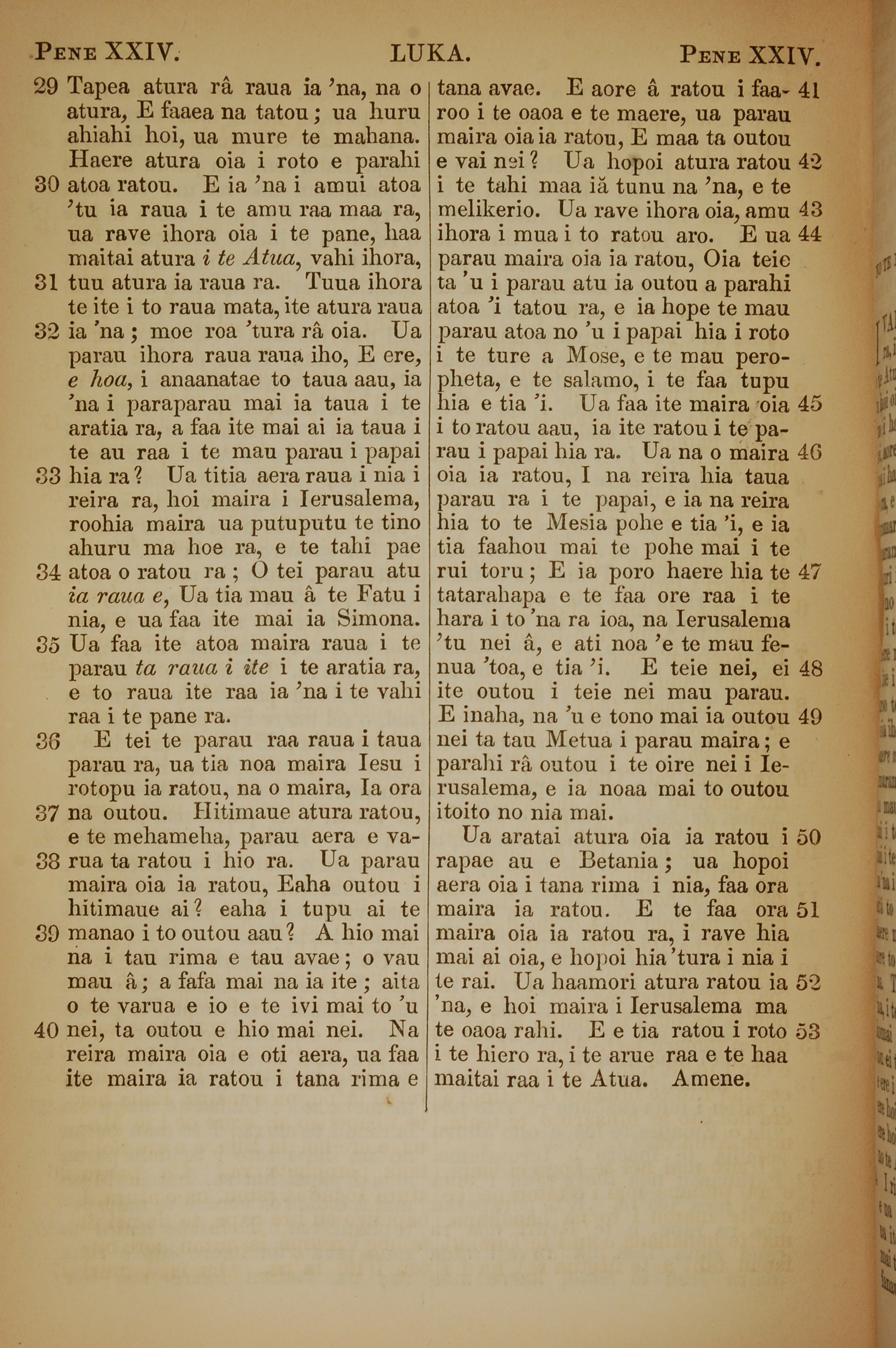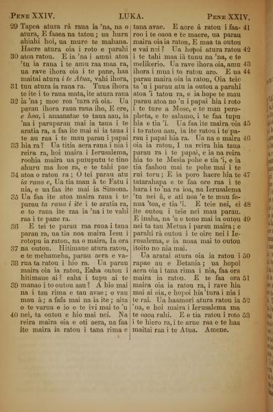 1853年塔希提语新约全书 路加福音 24 章 29 节到 24 章 53 节