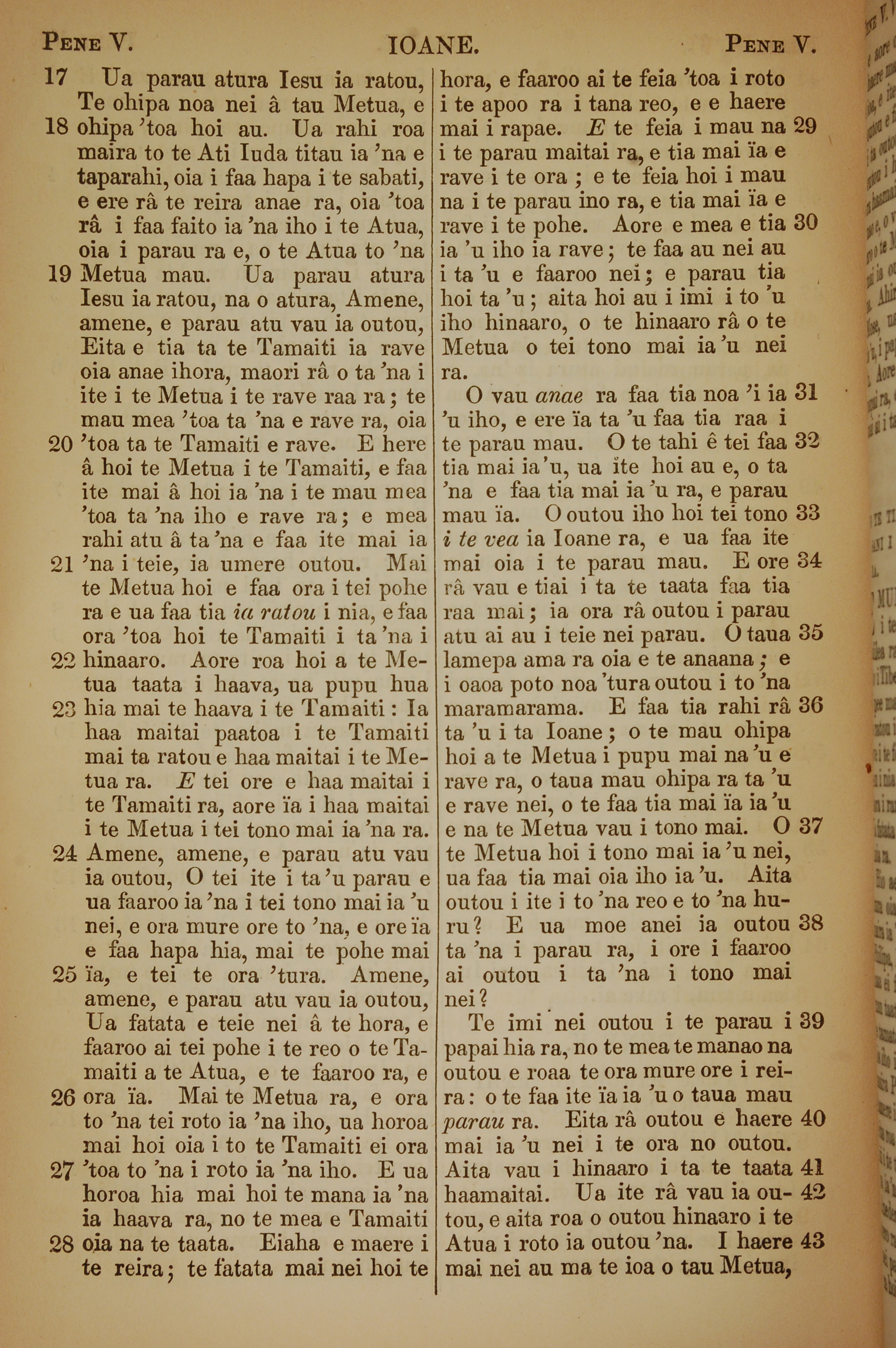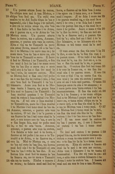 1853年塔希提语新约全书 约翰福音 5 章 17 节到 5 章 43 节