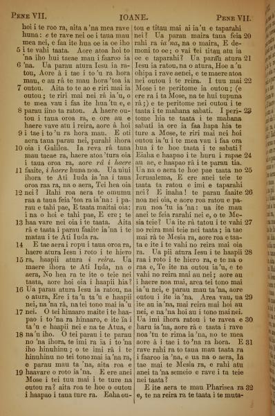 1853年塔希提语新约全书 约翰福音 7 章 5 节到 7 章 32 节