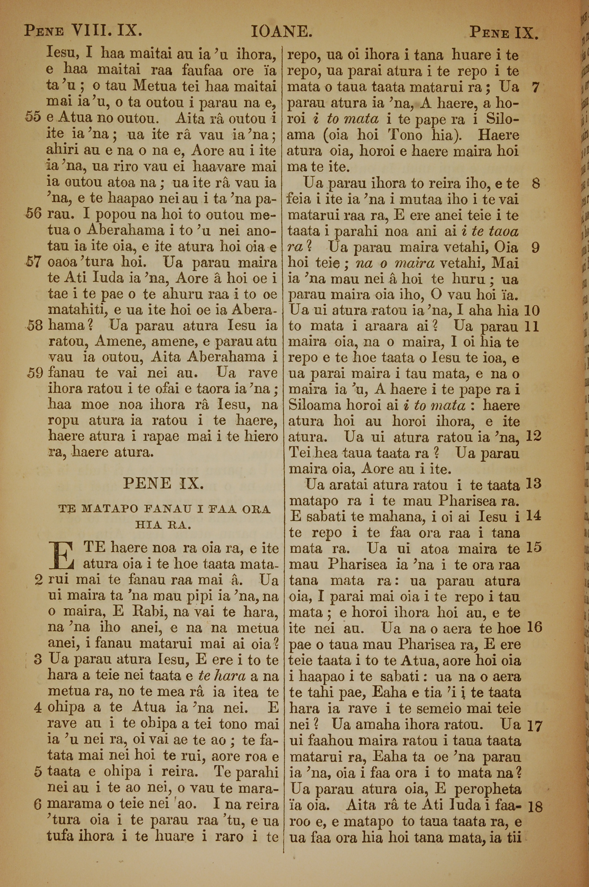 1853年塔希提语新约全书 约翰福音 8 章 55 节到 9 章 18 节