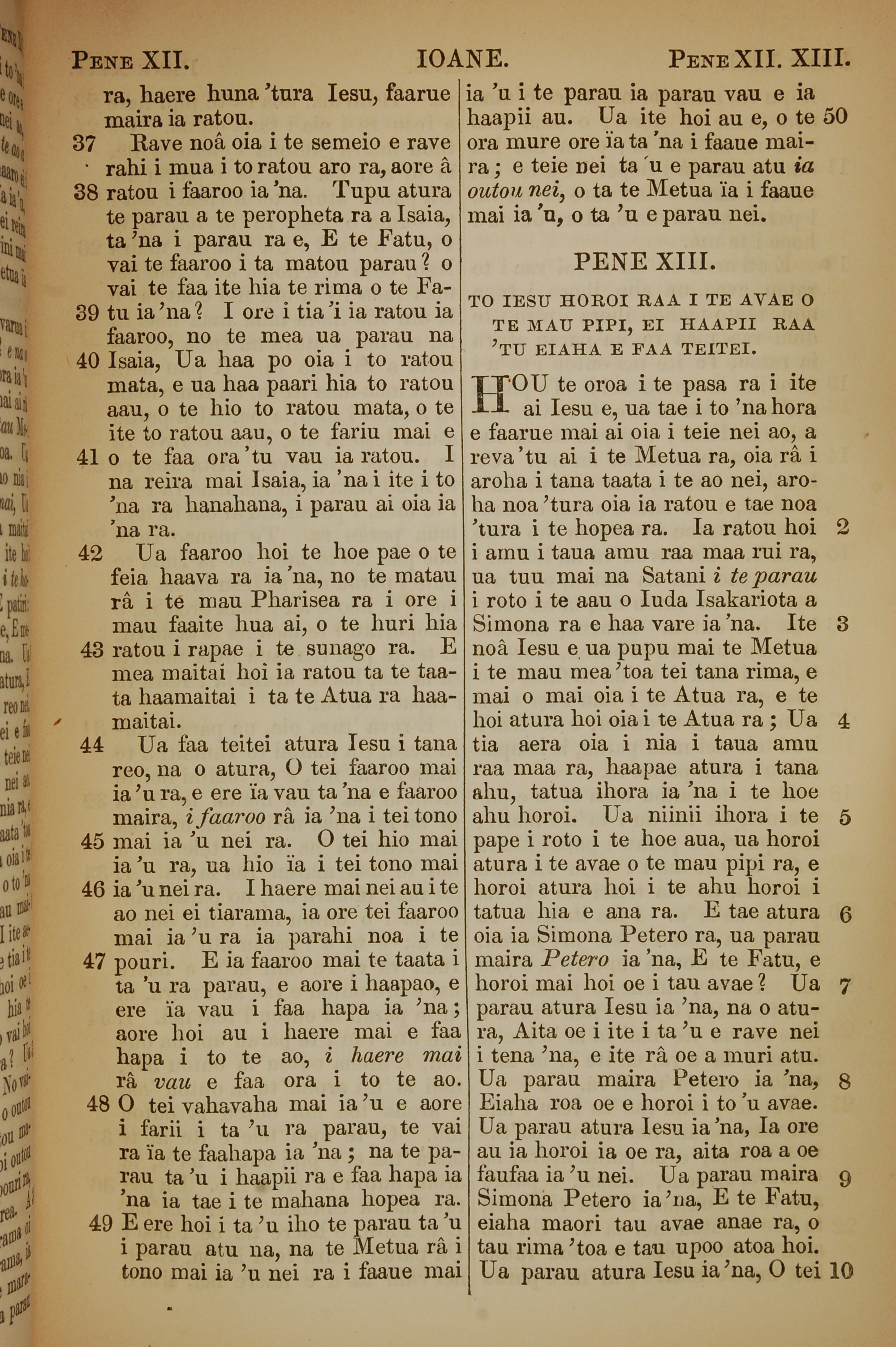 1853年塔希提语新约全书 约翰福音 12 章 37 节到 13 章 10 节