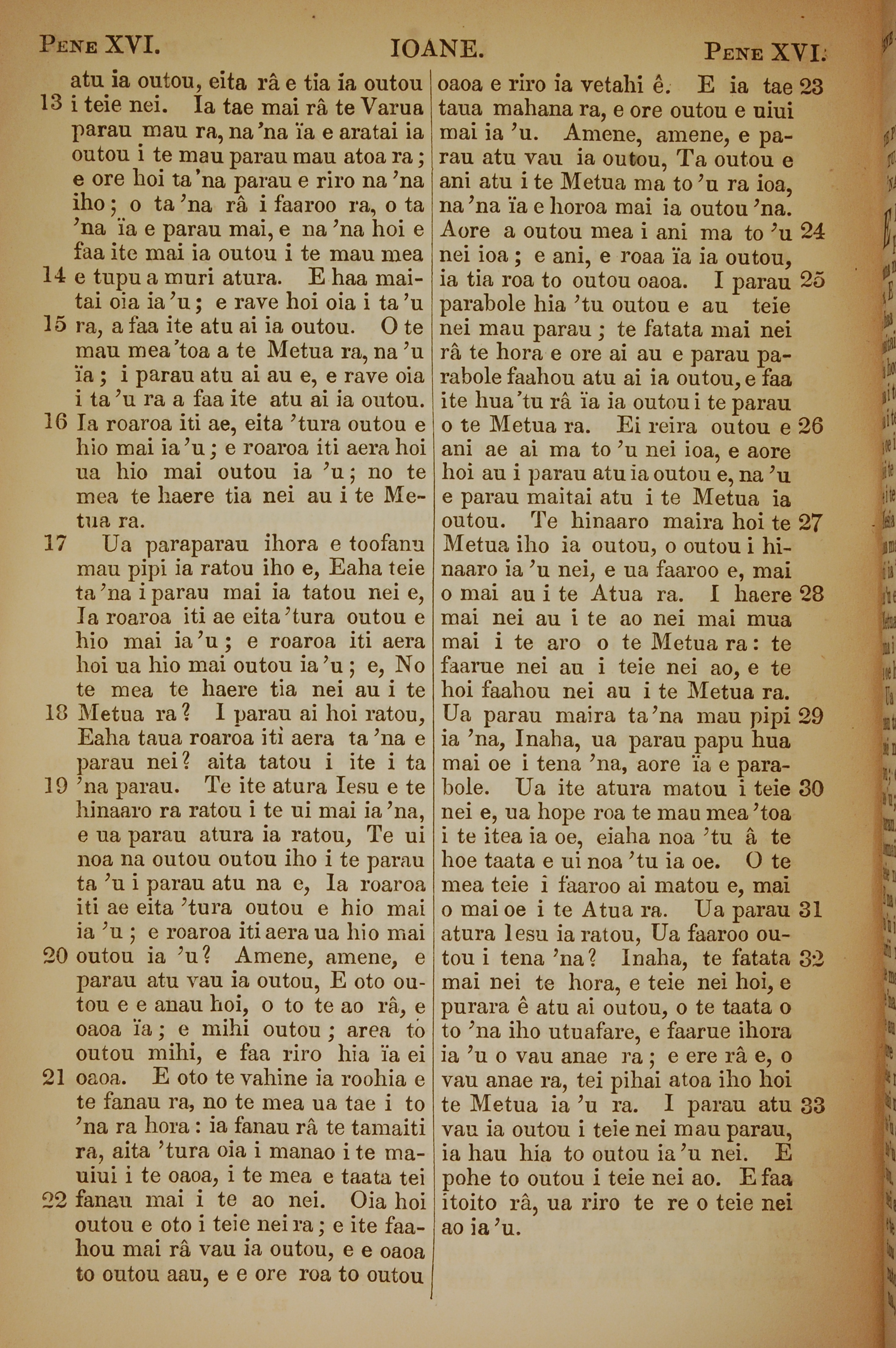1853年塔希提语新约全书 约翰福音 16 章 13 节到 16 章 33 节