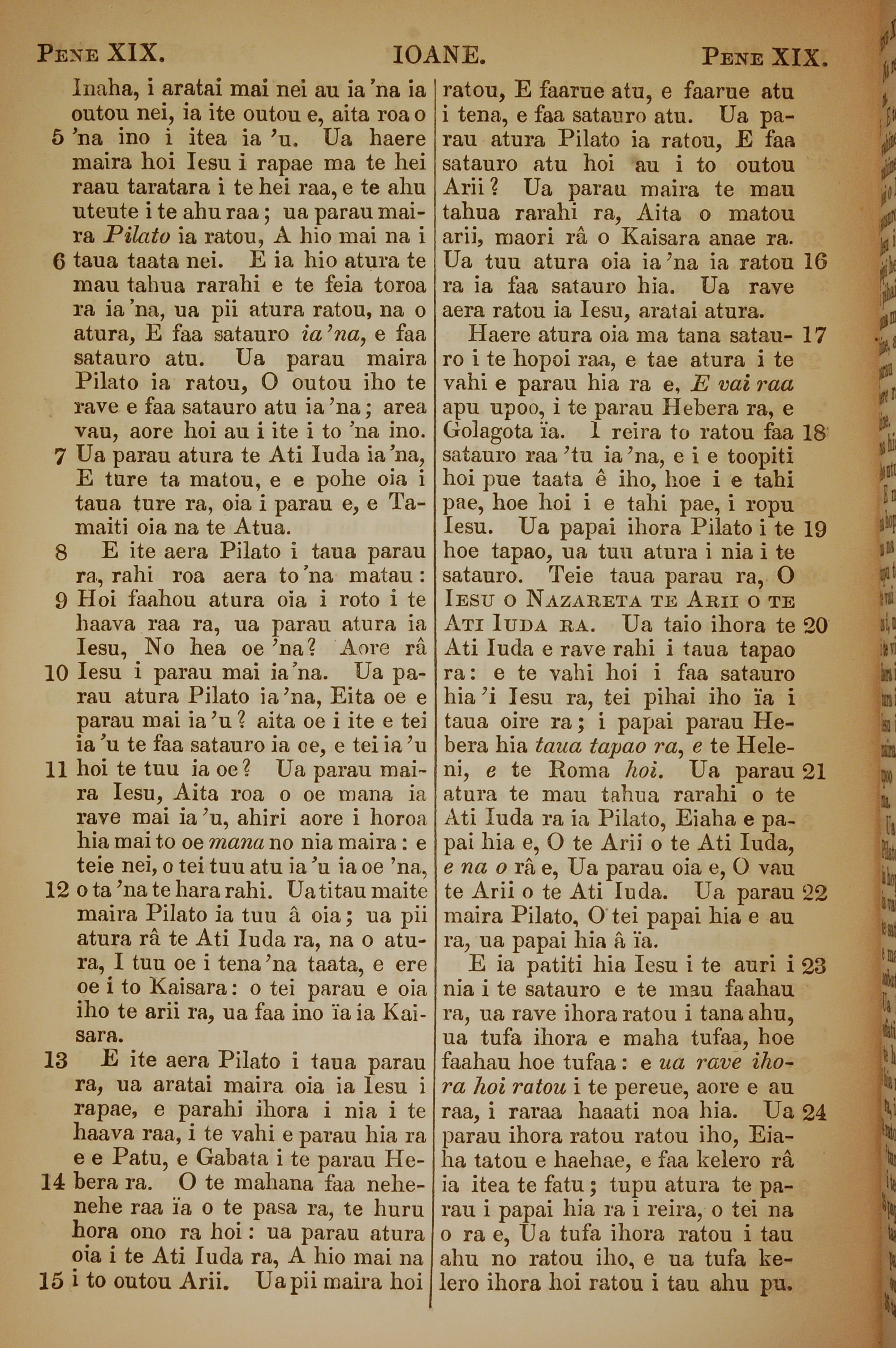 1853年塔希提语新约全书 约翰福音 19 章 5 节到 19 章 24 节