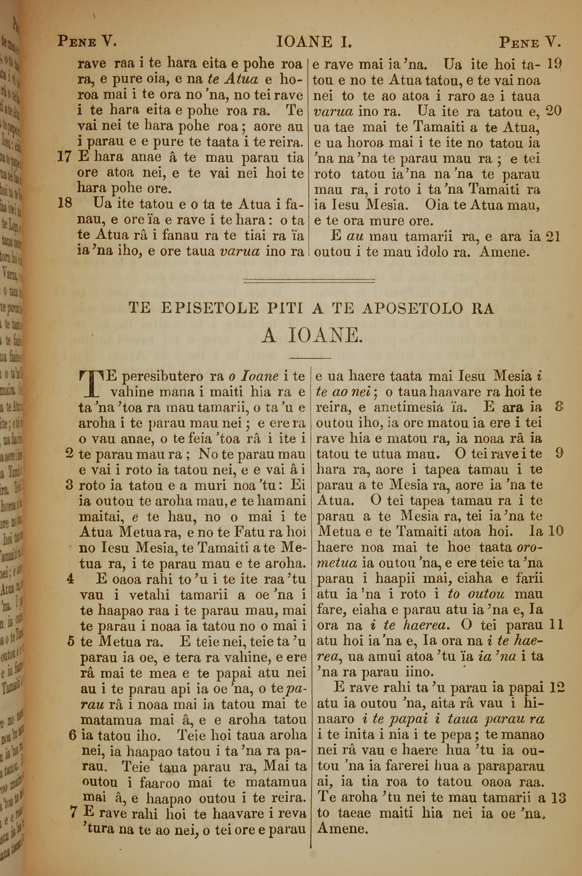 1853年塔希提语新约全书 约翰一书 5 章 17 节到 5 章 21 节
