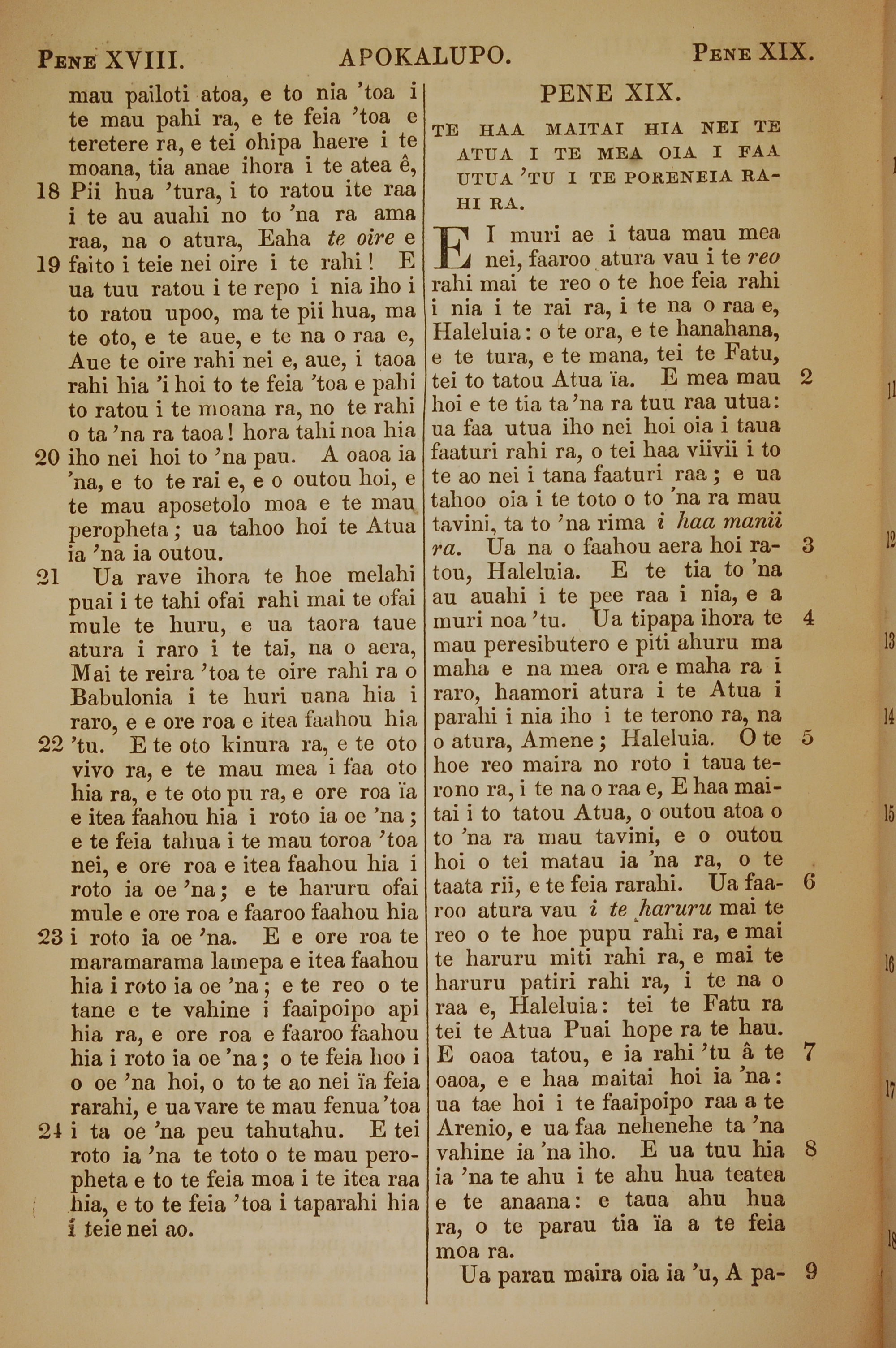 1853年塔希提语新约全书 启示录 18 章 18 节到 19 章 9 节