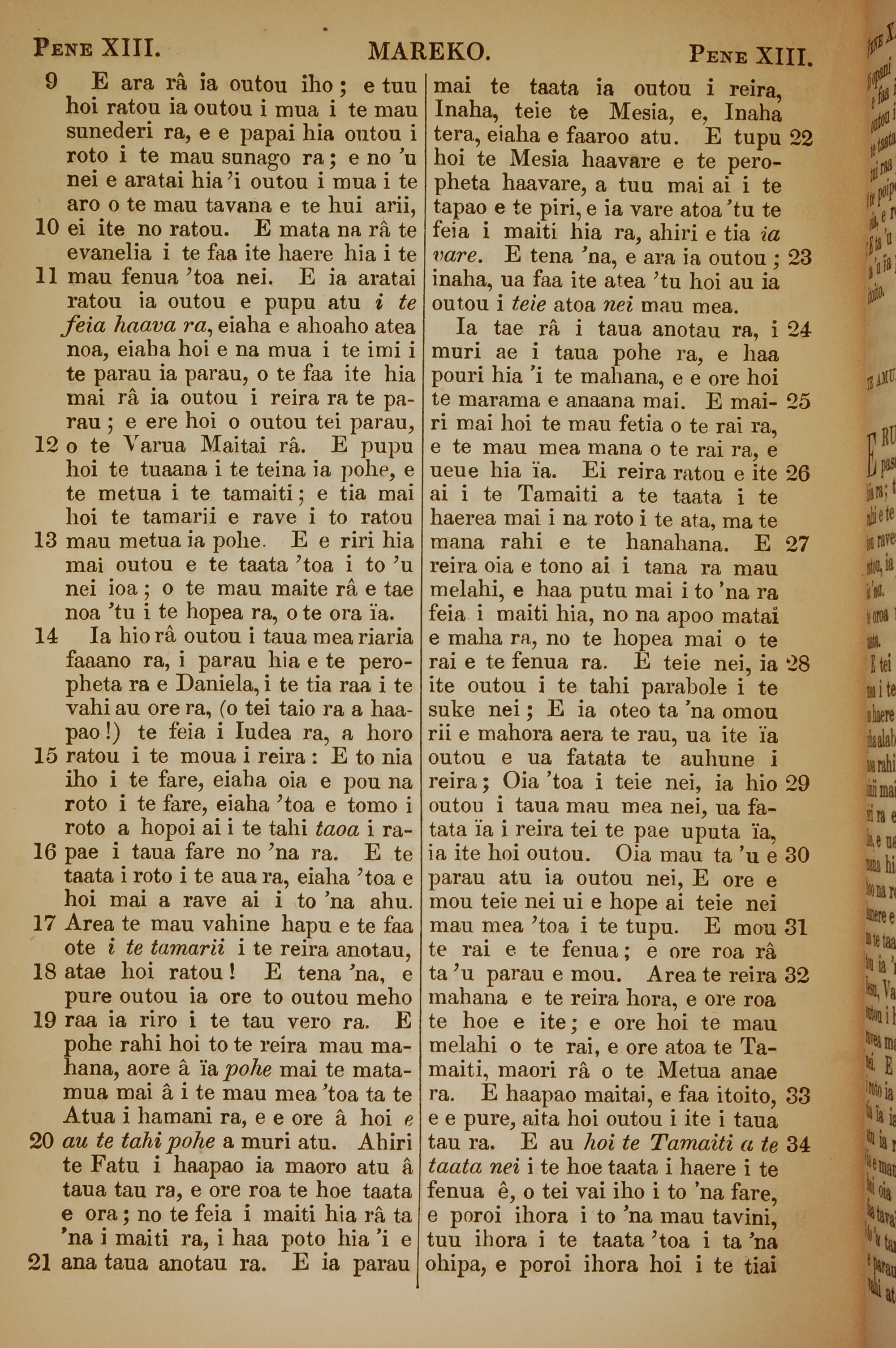1853年塔希提语新约全书 马可福音 13 章 9 节到 13 章 34 节