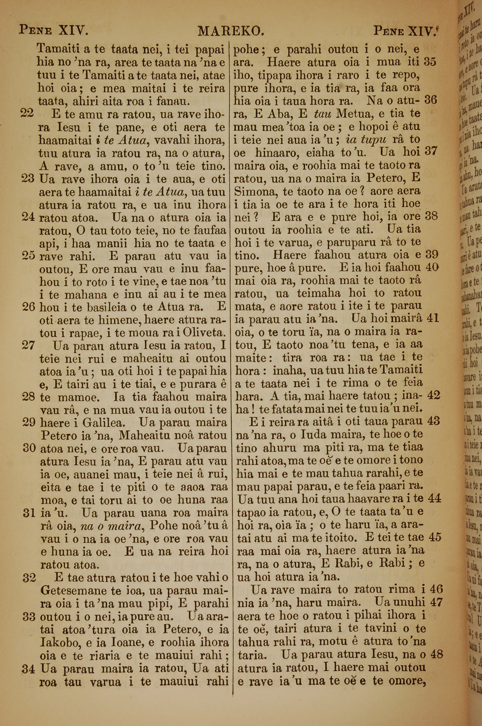 1853年塔希提语新约全书 马可福音 14 章 22 节到 14 章 48 节