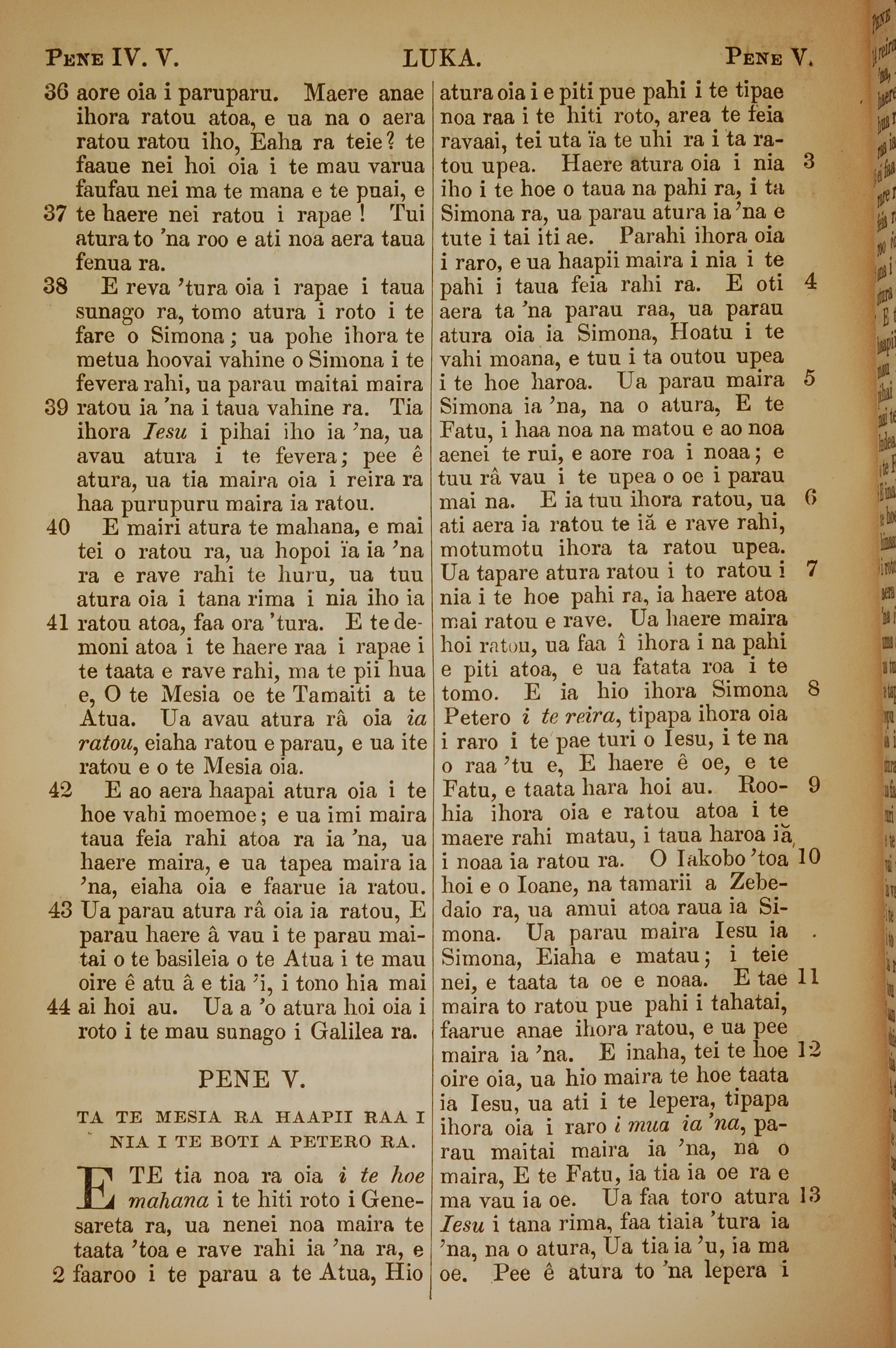 1853年塔希提语新约全书 路加福音 4 章 36 节到 5 章 13 节