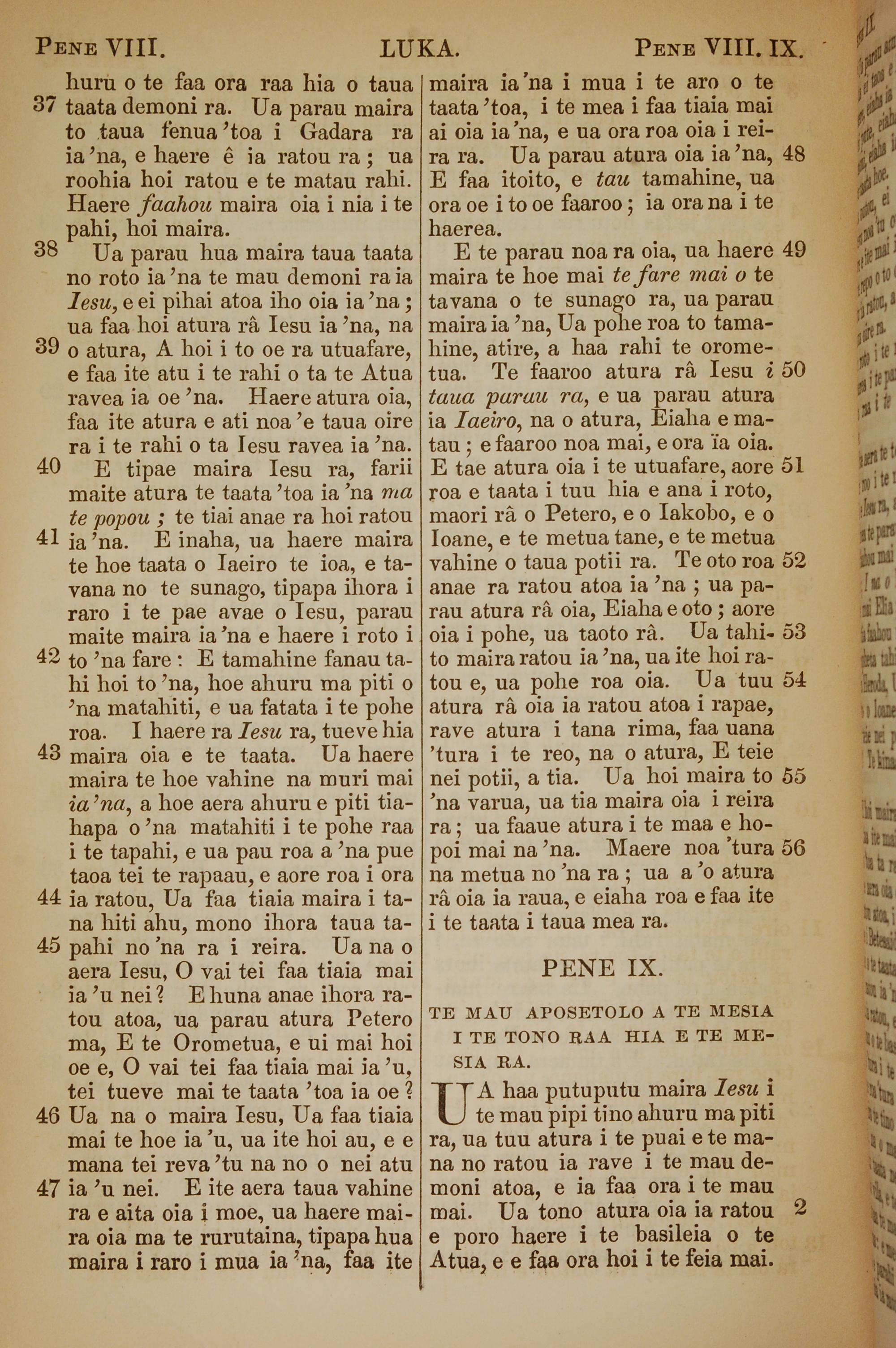 1853年塔希提语新约全书 路加福音 8 章 37 节到 9 章 2 节