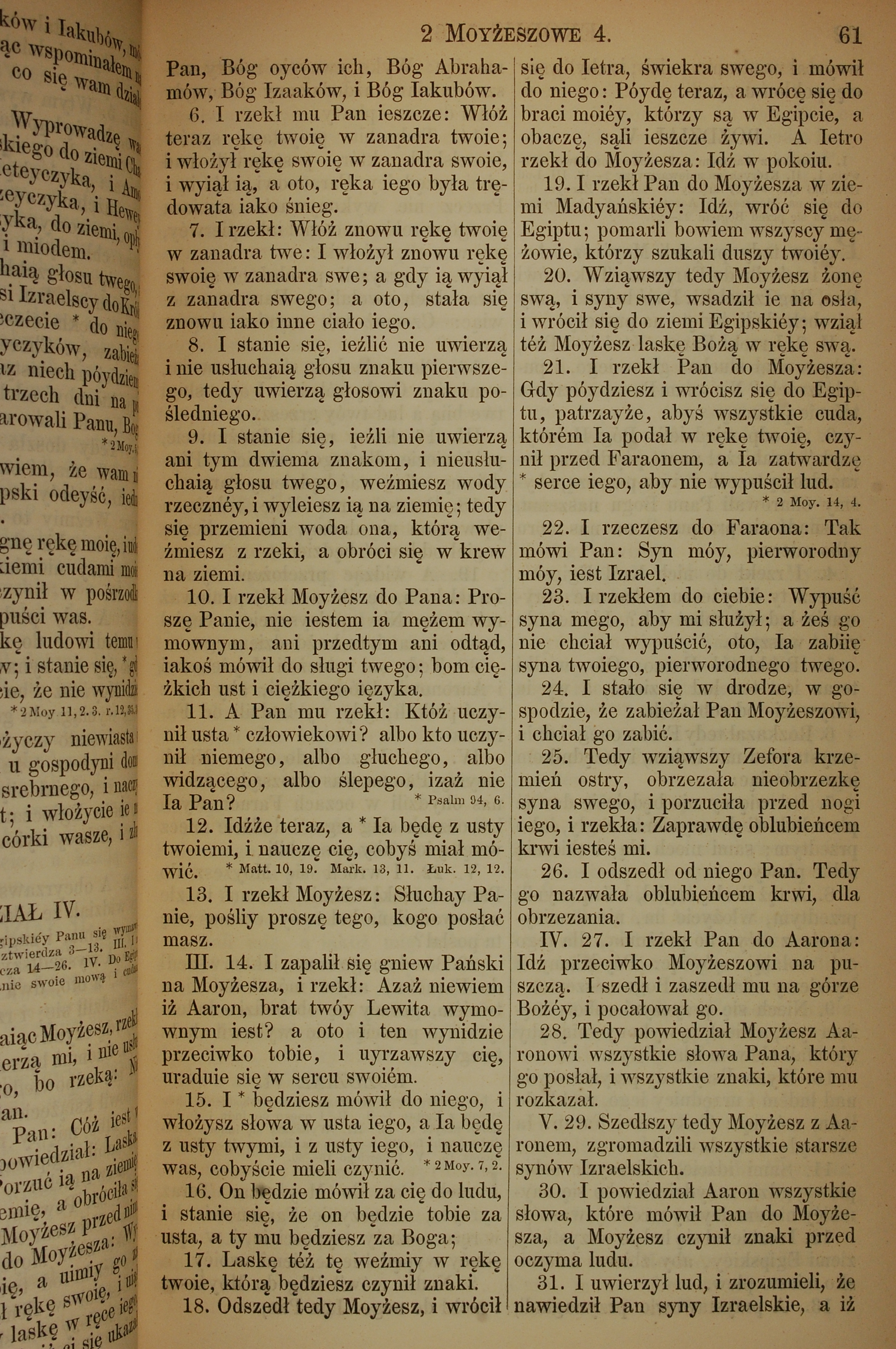 1857年波兰文新旧约全书 出埃及记 4 章 6 节到 4 章 31 节