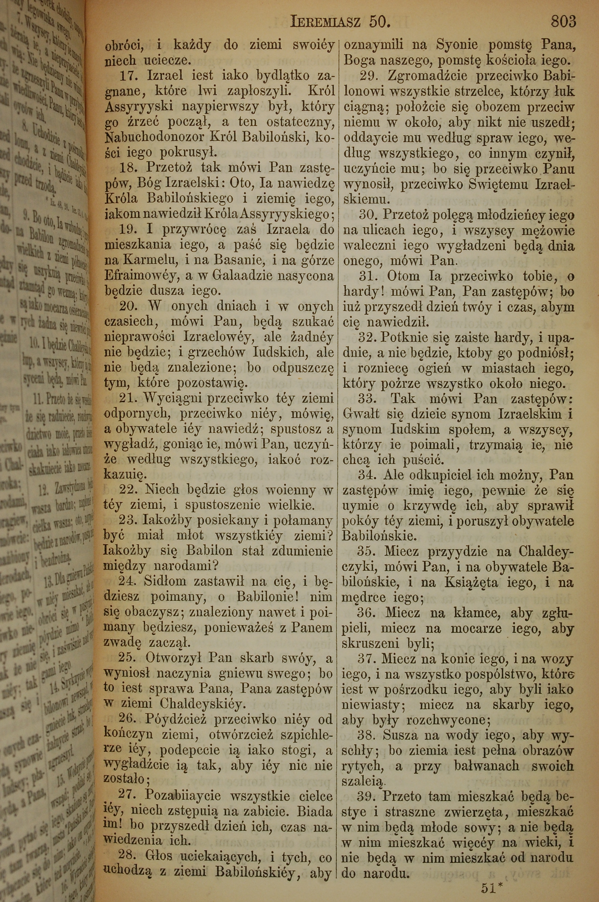 1857年波兰文新旧约全书 耶利米书 50 章 17 节到 50 章 39 节