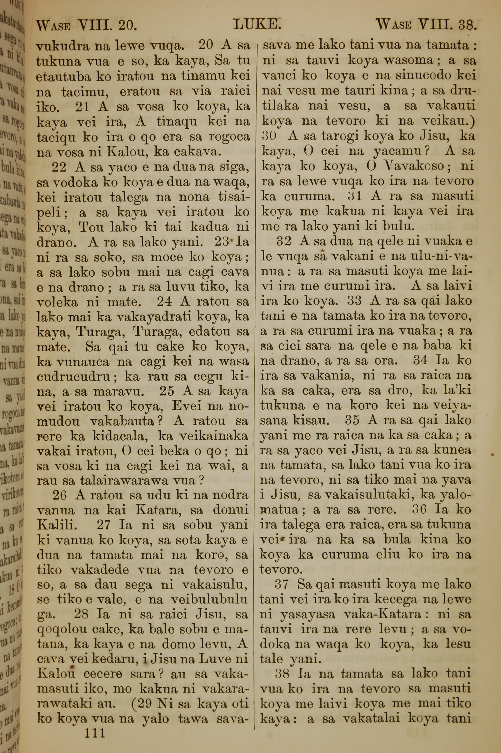 1858年斐济文新约全书 路加福音 8 章 20 节到 8 章 38 节