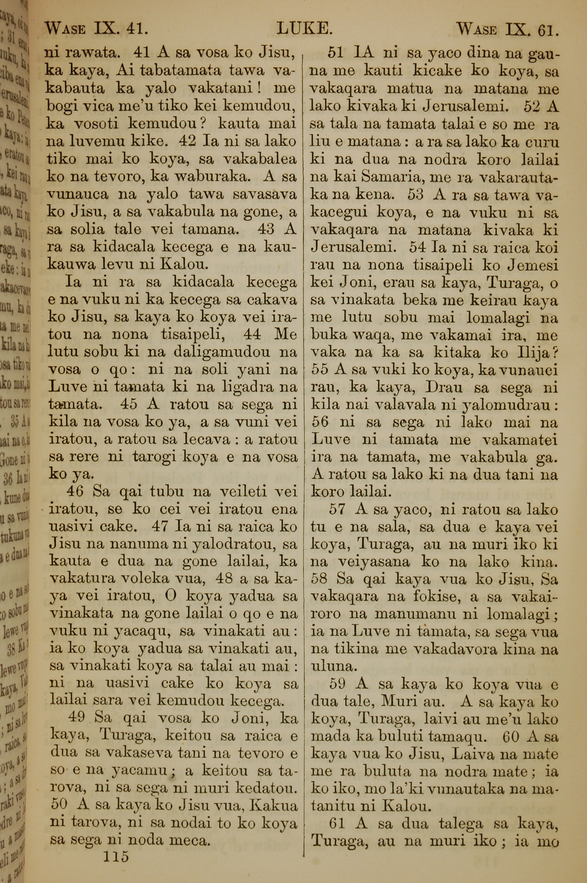 1858年斐济文新约全书 路加福音 9 章 41 节到 9 章 61 节