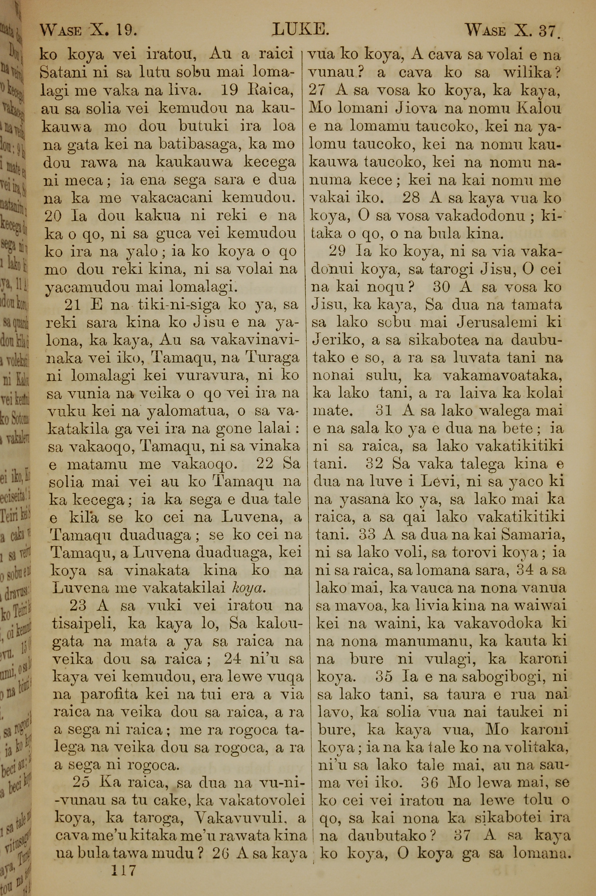 1858年斐济文新约全书 路加福音 10 章 19 节到 10 章 37 节