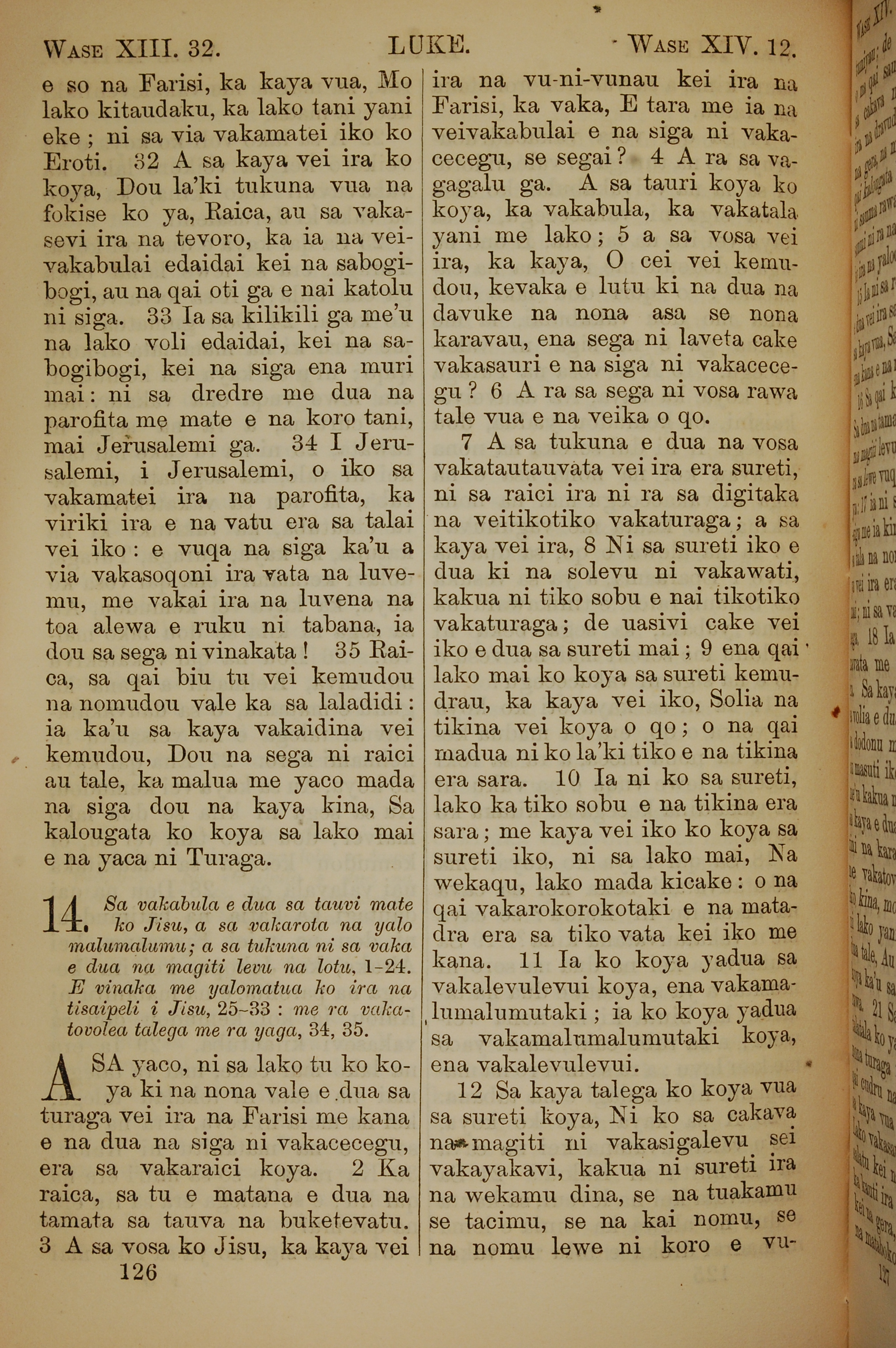 1858年斐济文新约全书 路加福音 13 章 32 节到 14 章 12 节