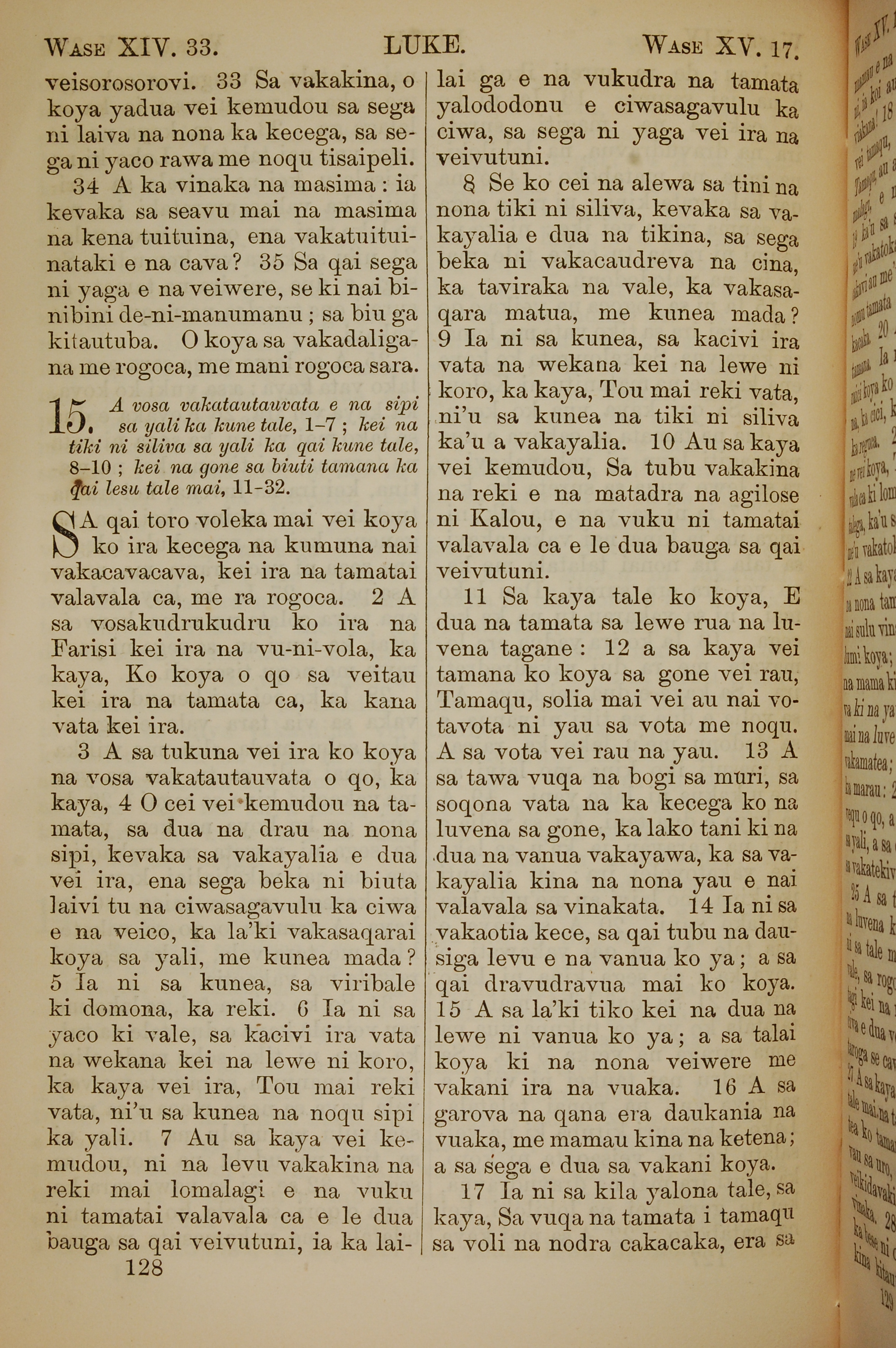1858年斐济文新约全书 路加福音 14 章 33 节到 15 章 17 节