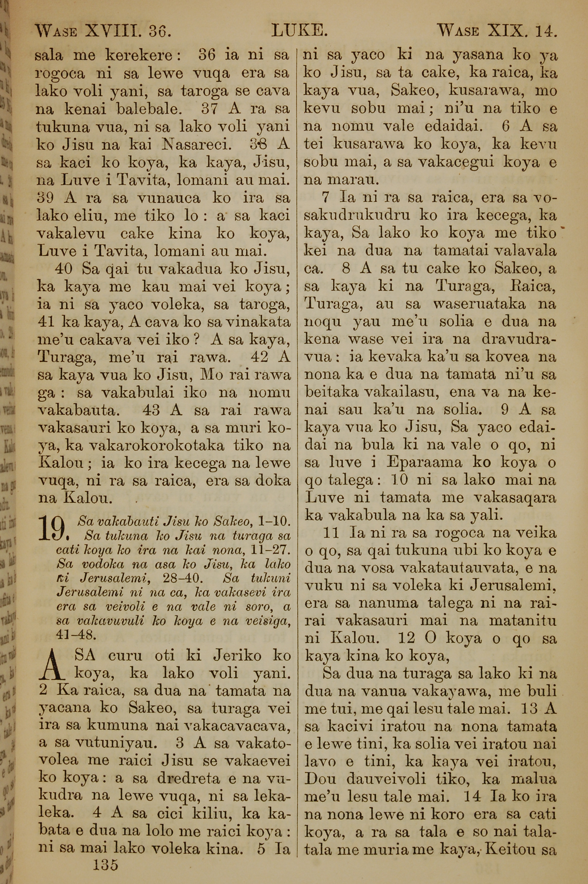 1858年斐济文新约全书 路加福音 18 章 36 节到 19 章 14 节