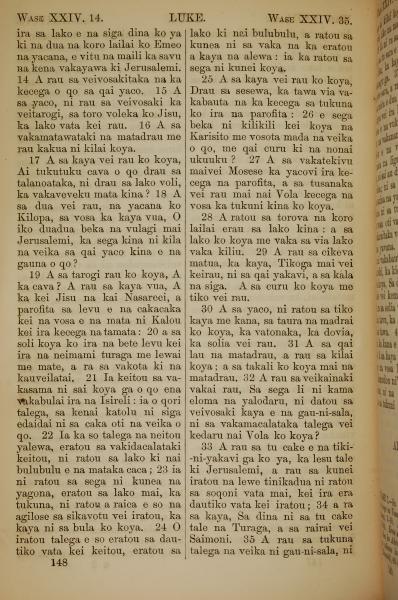 1858年斐济文新约全书 路加福音 24 章 14 节到 24 章 35 节