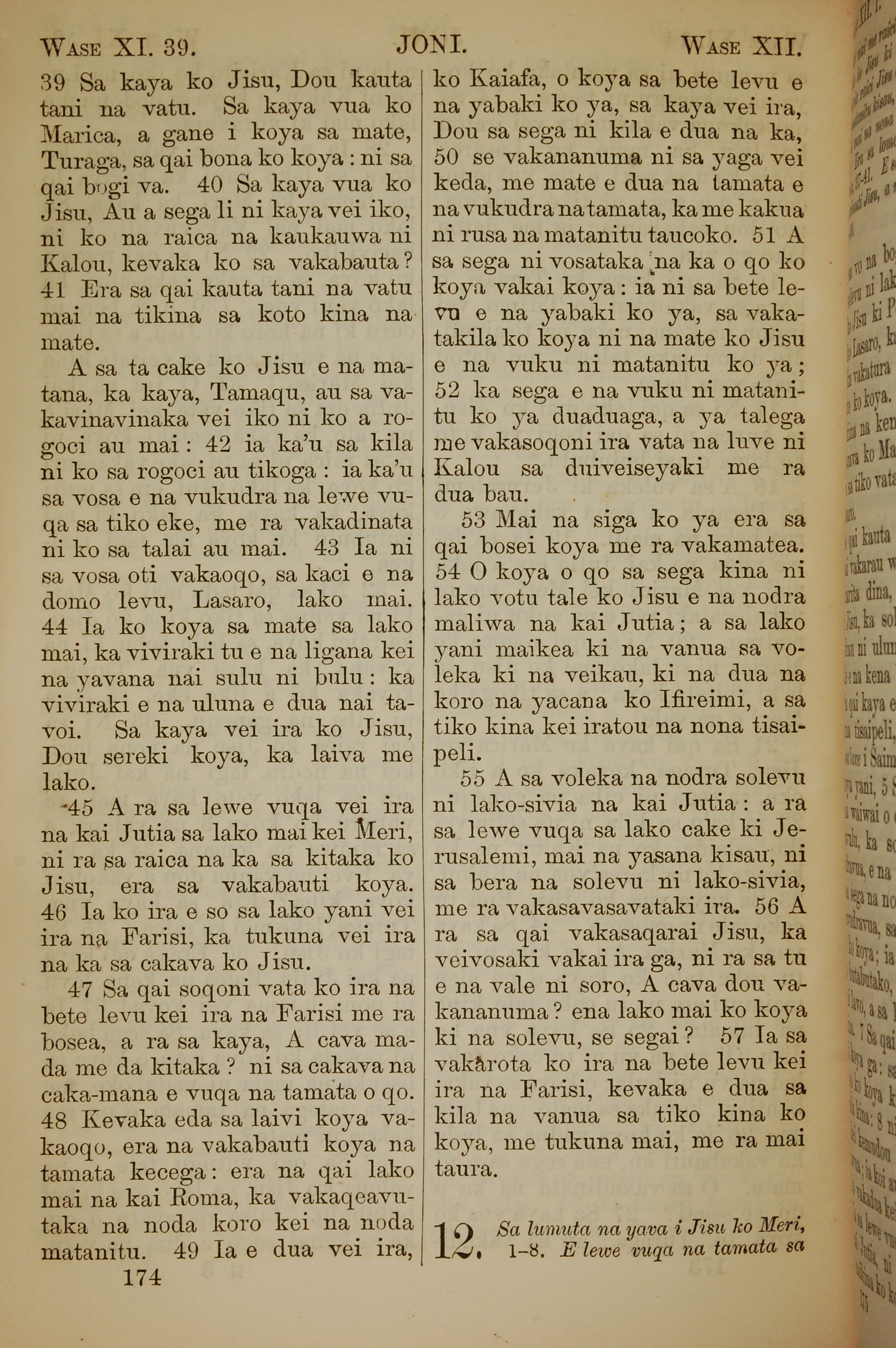 1858年斐济文新约全书 约翰福音 11 章 39 节到 11 章 57 节