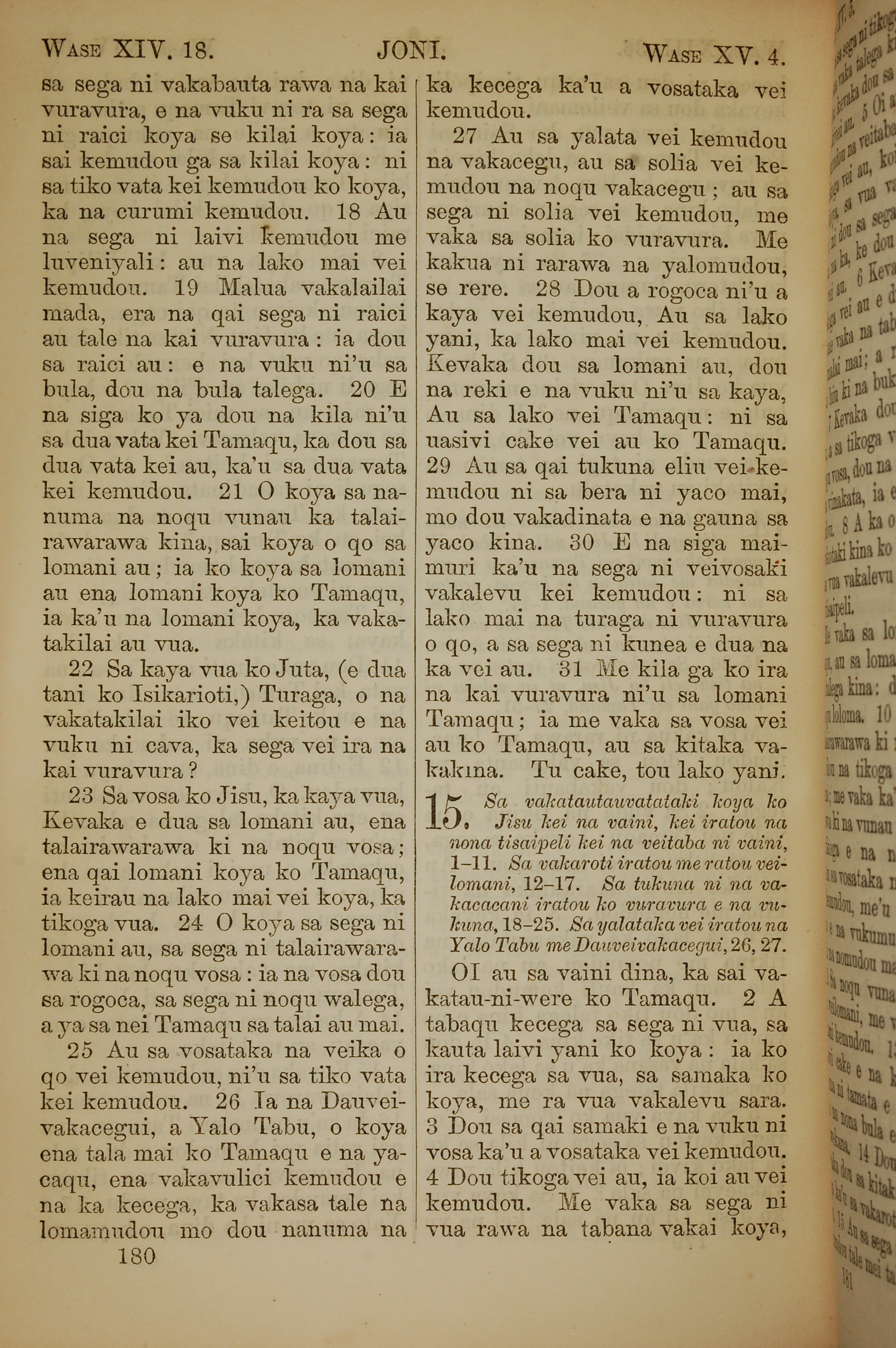1858年斐济文新约全书 约翰福音 14 章 18 节到 15 章 4 节