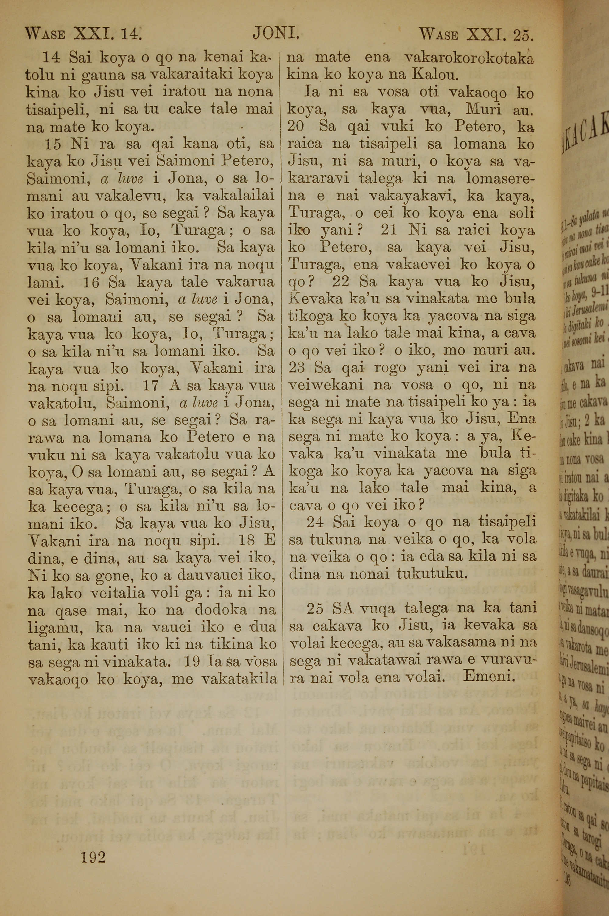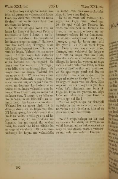 1858年斐济文新约全书 约翰福音 21 章 14 节到 21 章 25 节