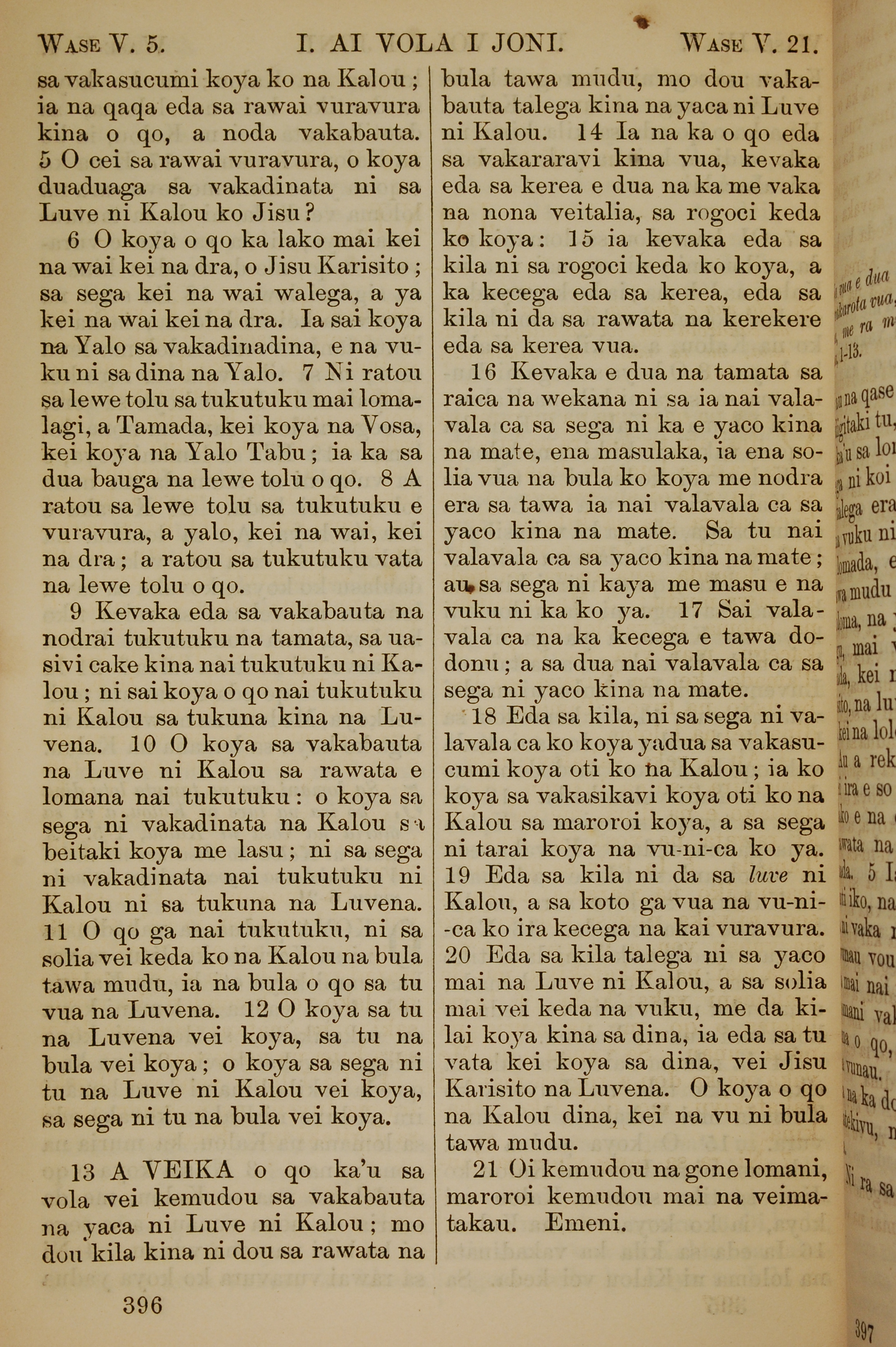 1858年斐济文新约全书 约翰一书 5 章 5 节到 5 章 21 节