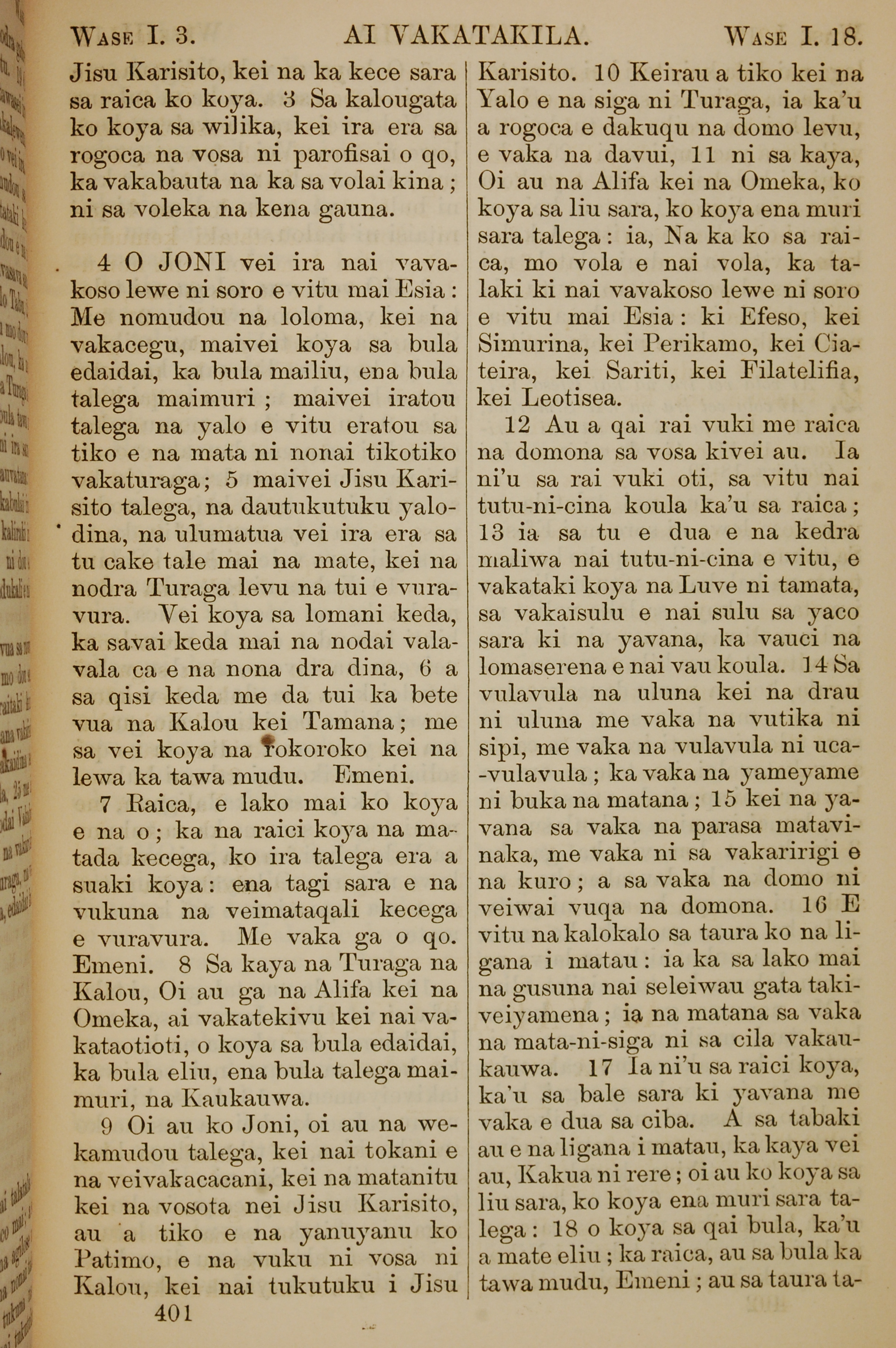 1858年斐济文新约全书 启示录 1 章 3 节到 1 章 18 节