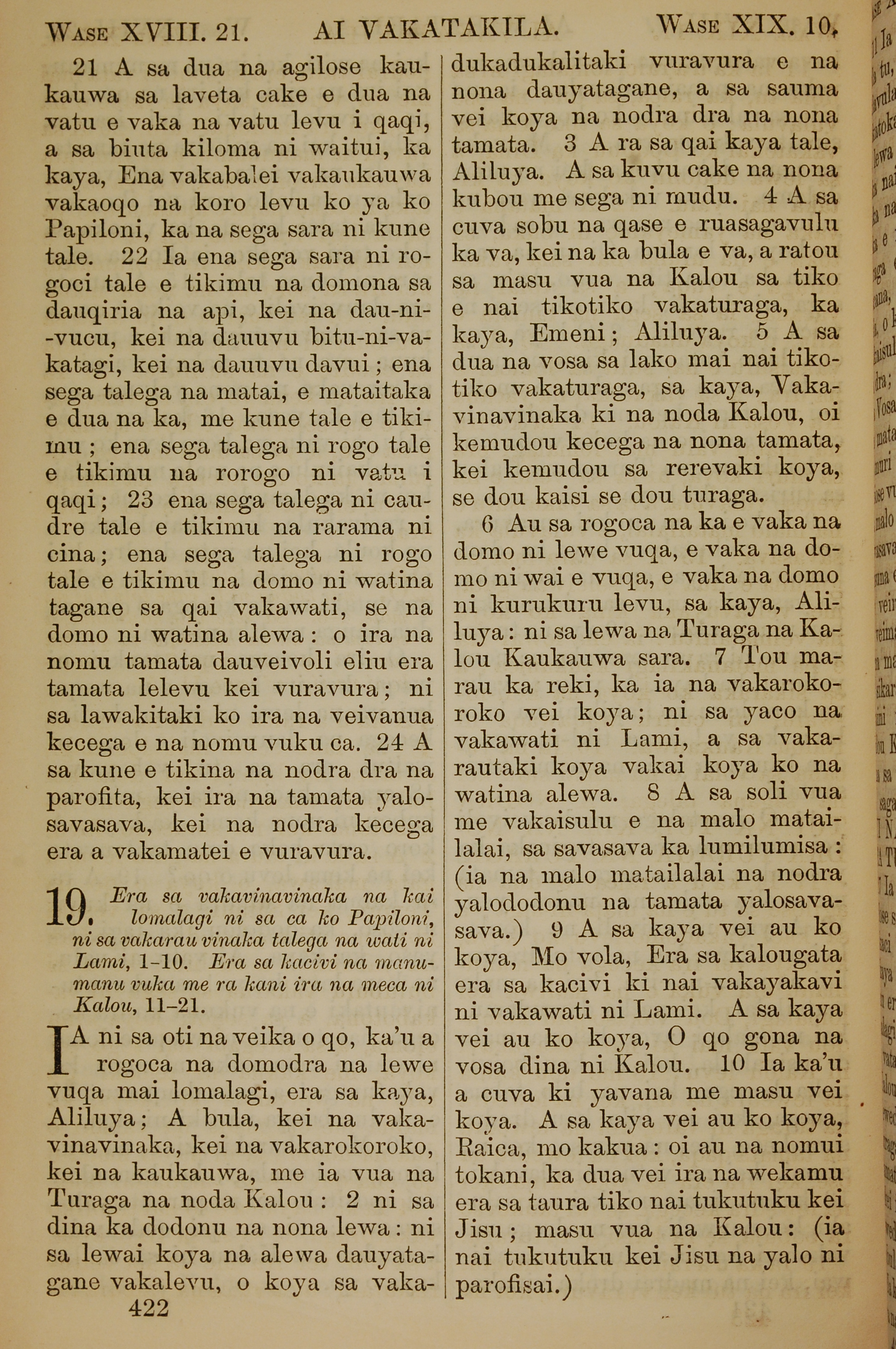 1858年斐济文新约全书 启示录 18 章 21 节到 19 章 10 节