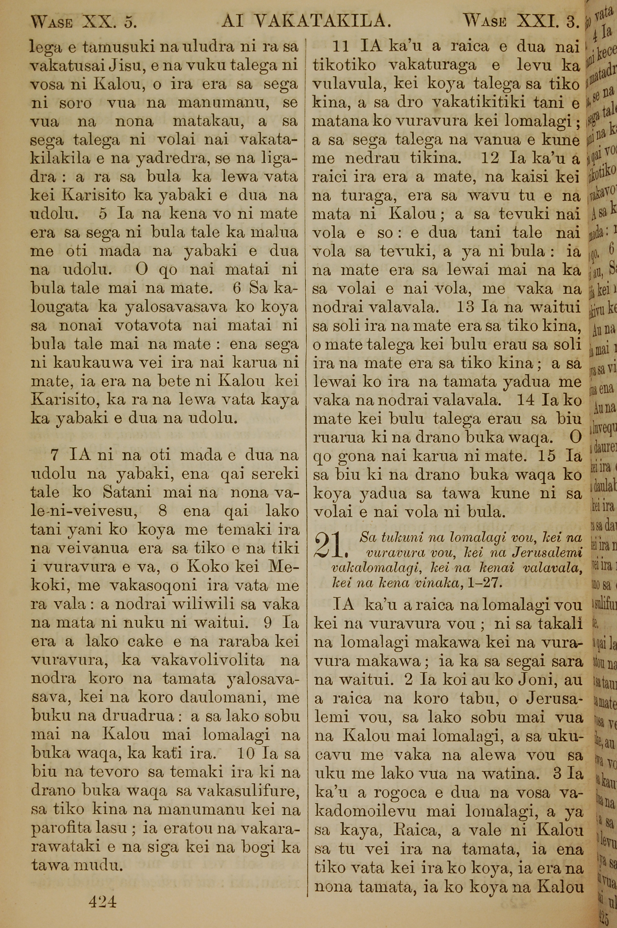 1858年斐济文新约全书 启示录 20 章 5 节到 21 章 3 节