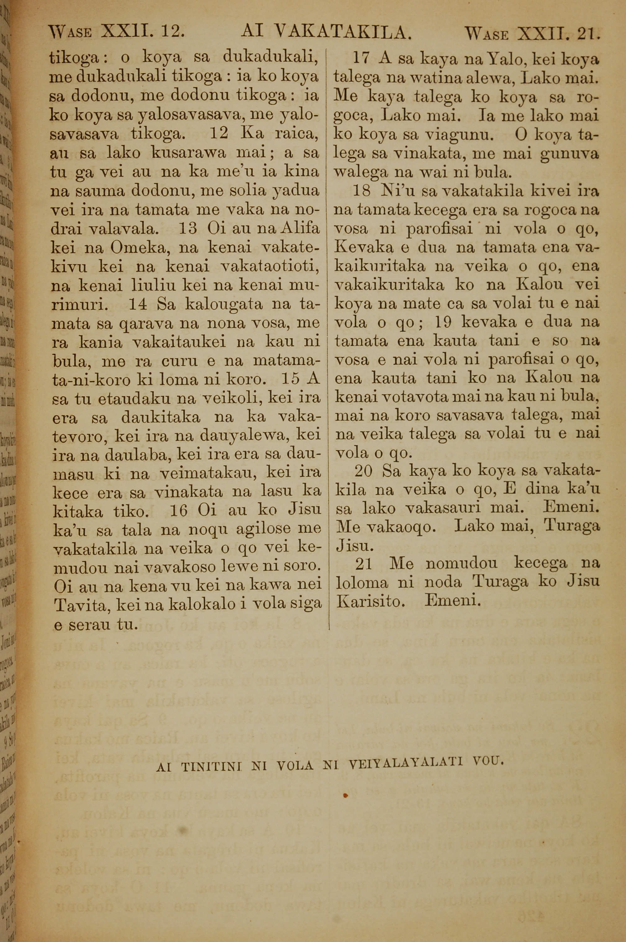 1858年斐济文新约全书 启示录 22 章 12 节到 22 章 21 节