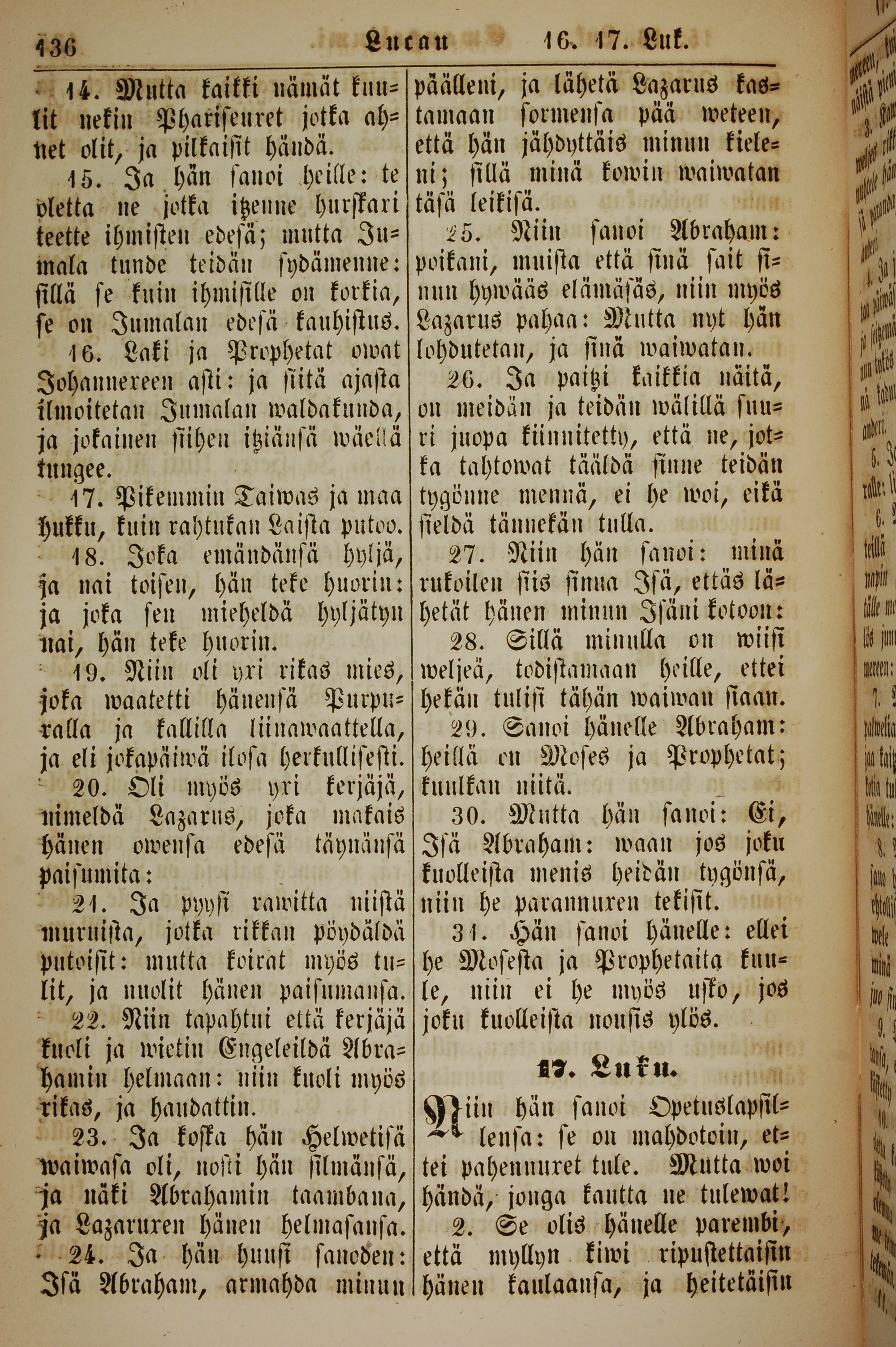 1861年新约全书 路加福音 16 章 14 节到 17 章 2 节