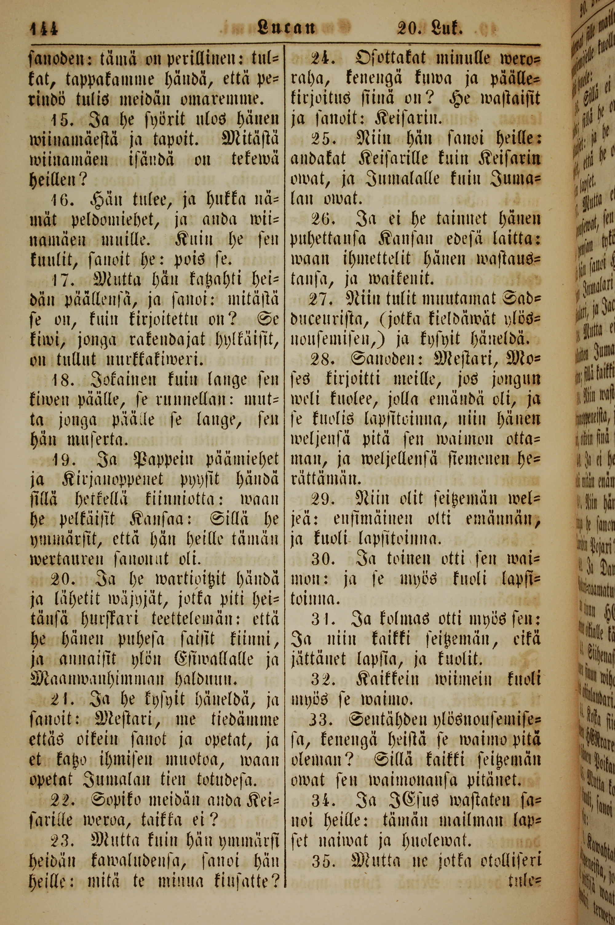1861年新约全书 路加福音 20 章 15 节到 20 章 35 节