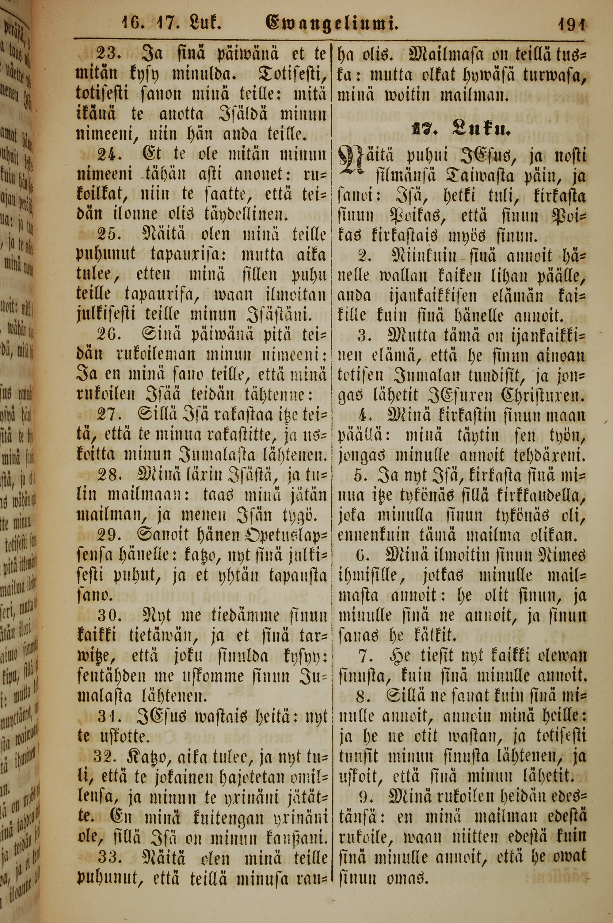1861年新约全书 约翰福音 16 章 23 节到 17 章 9 节
