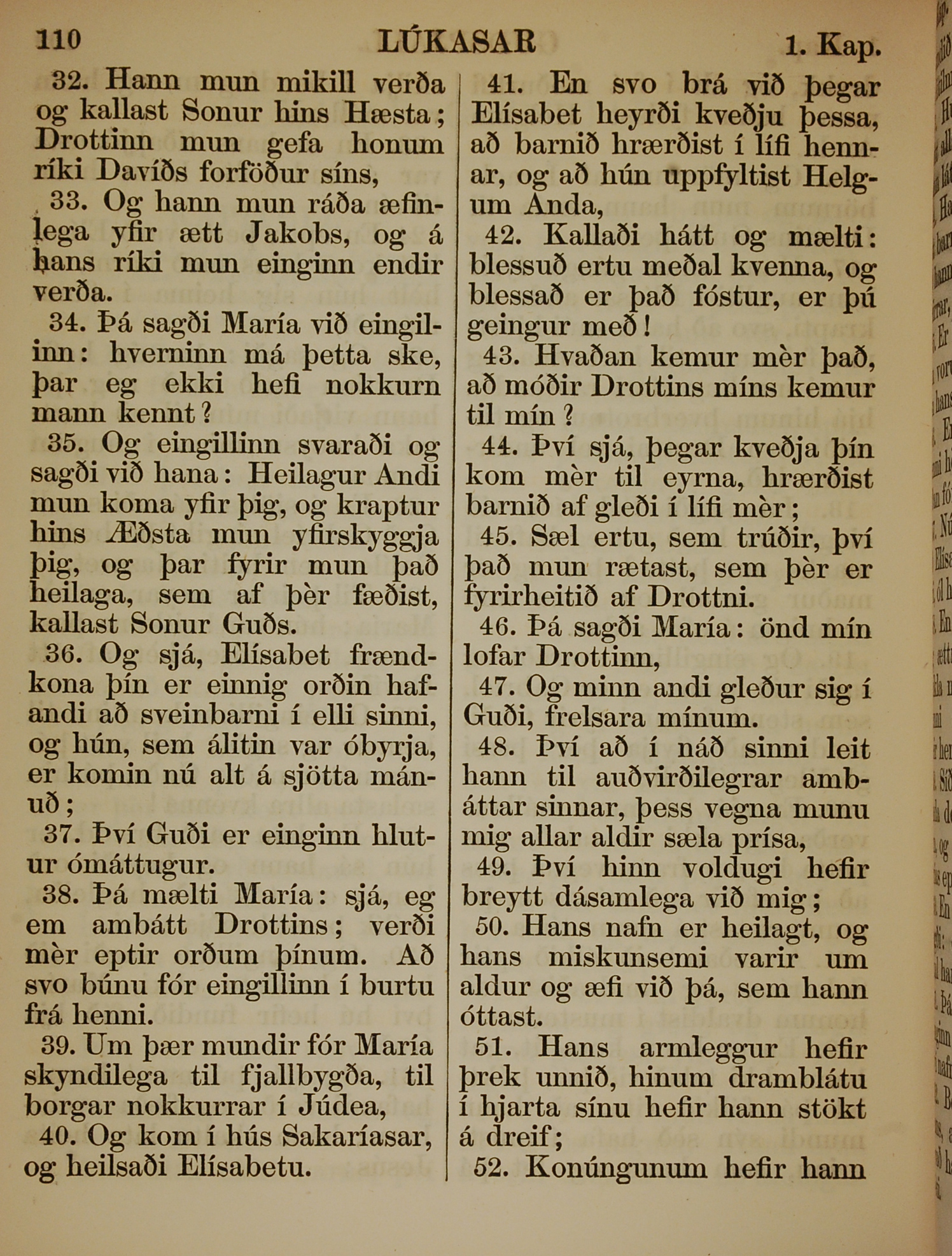 1863年冰岛语新约全书 路加福音 1 章 32 节到 1 章 52 节