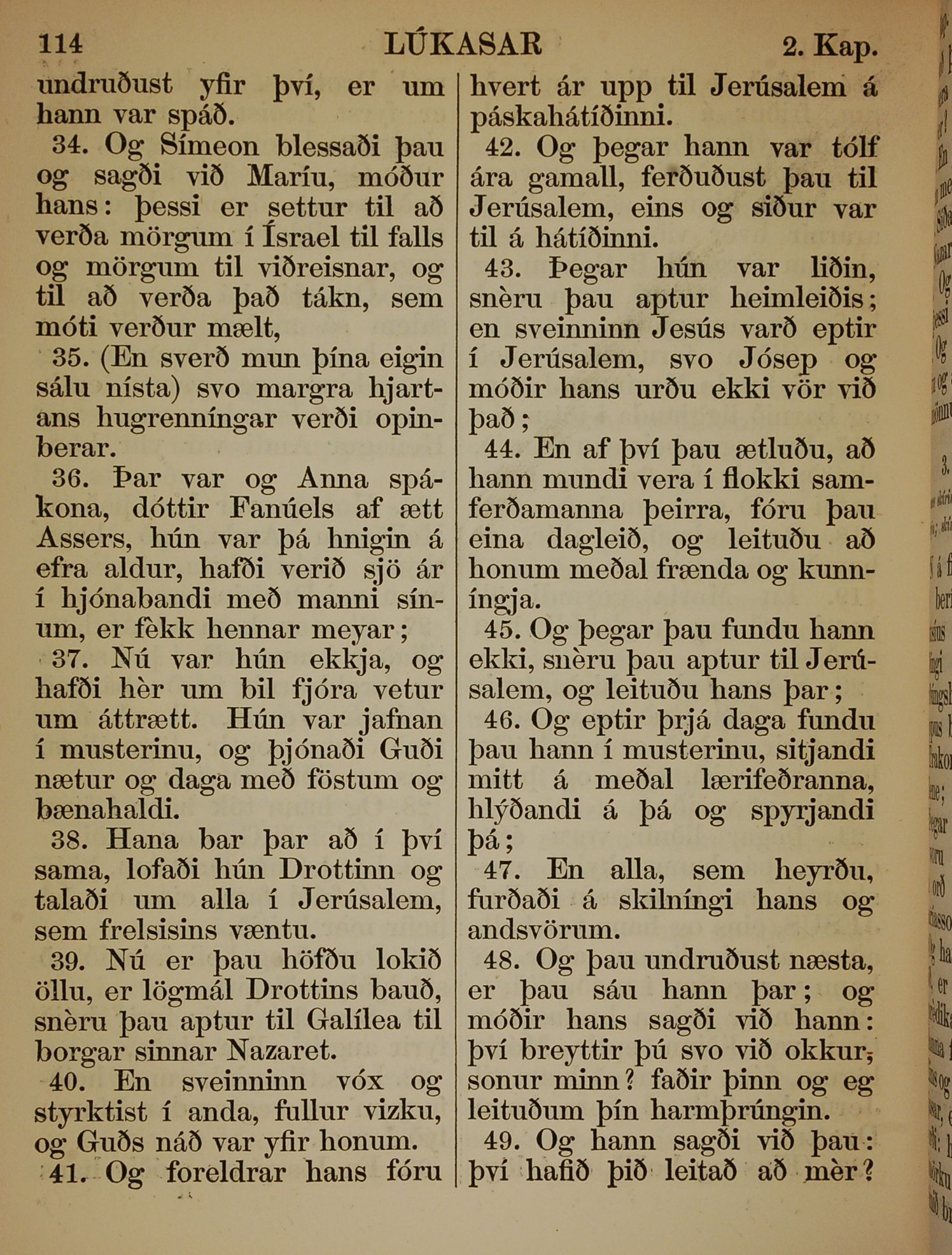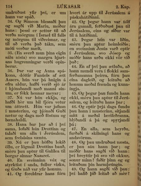 1863年冰岛语新约全书 路加福音 2 章 34 节到 2 章 49 节