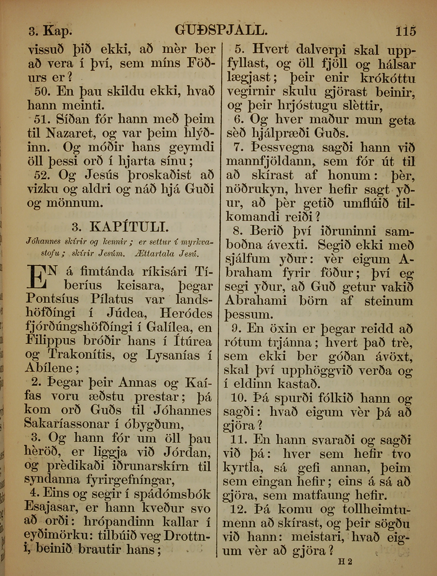 1863年冰岛语新约全书 路加福音 2 章 50 节到 3 章 12 节