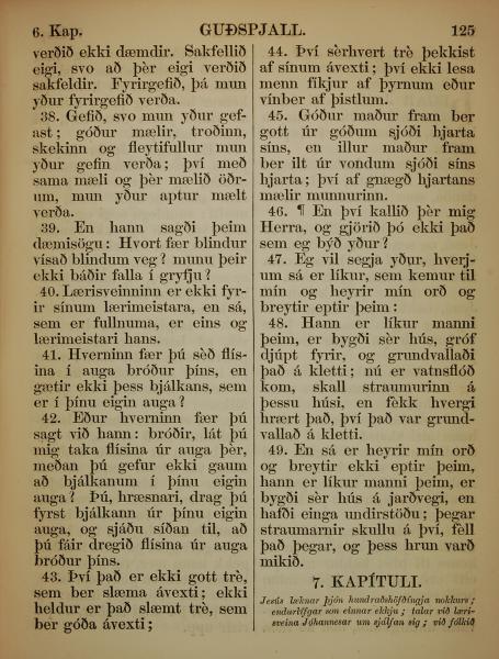 1863年冰岛语新约全书 路加福音 6 章 38 节到 6 章 49 节